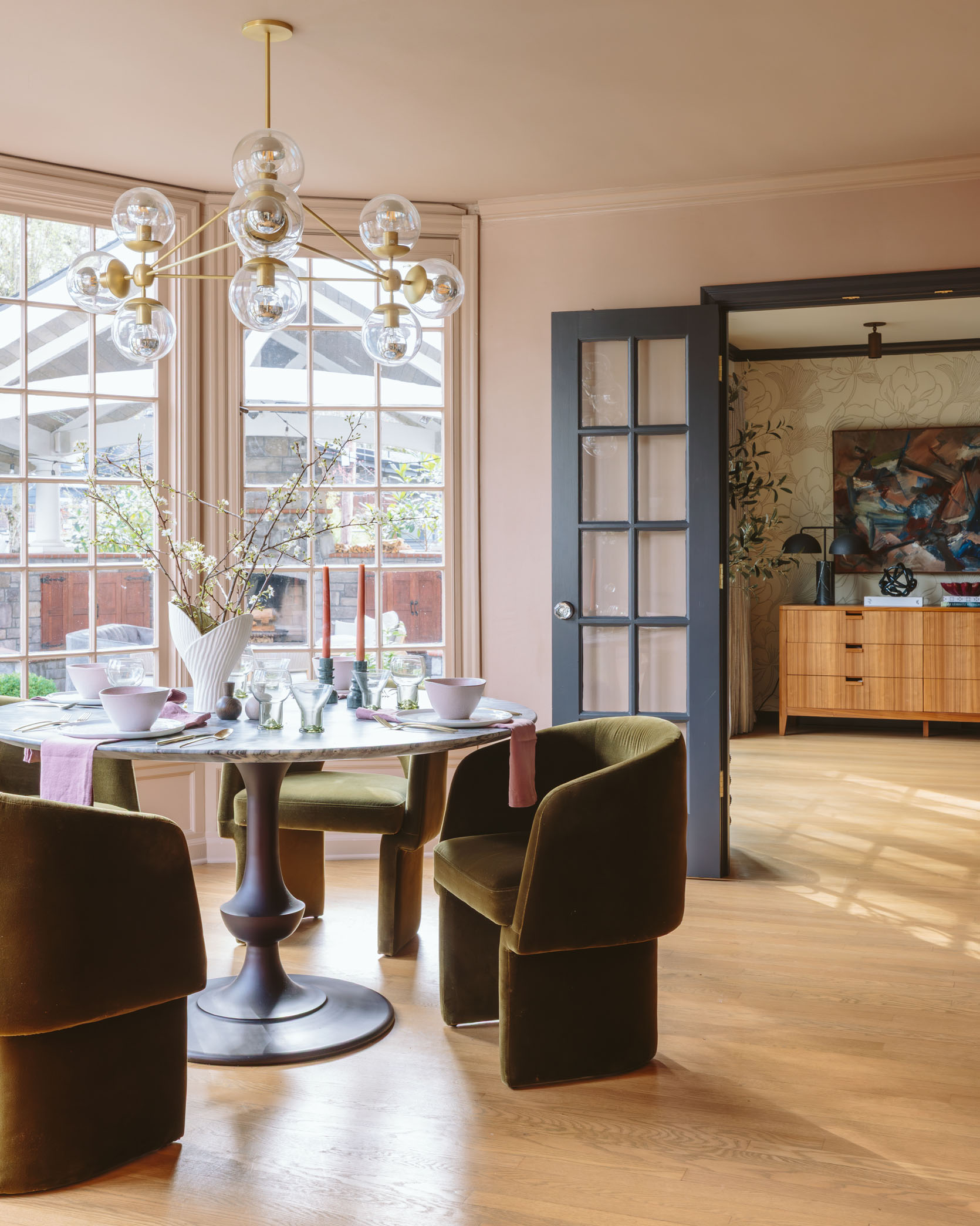 The dining nook is so special. I must use “Dead Salmon” somewhere in my life at some point (the Farrow & Ball paint color they chose).