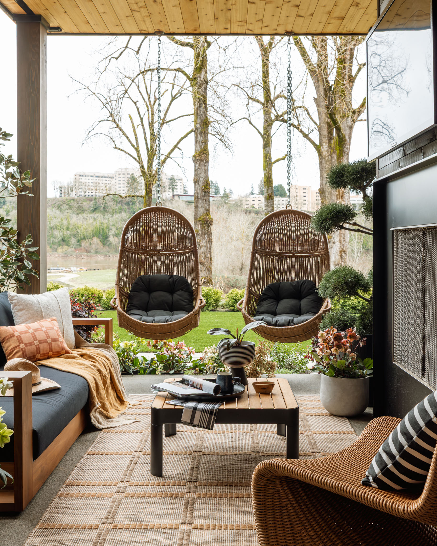 My brother’s kitchen patio had to be shot in February to hit our early spring deadline, but we managed to get like 2 days of non-rain to do it. I love those swings so much.