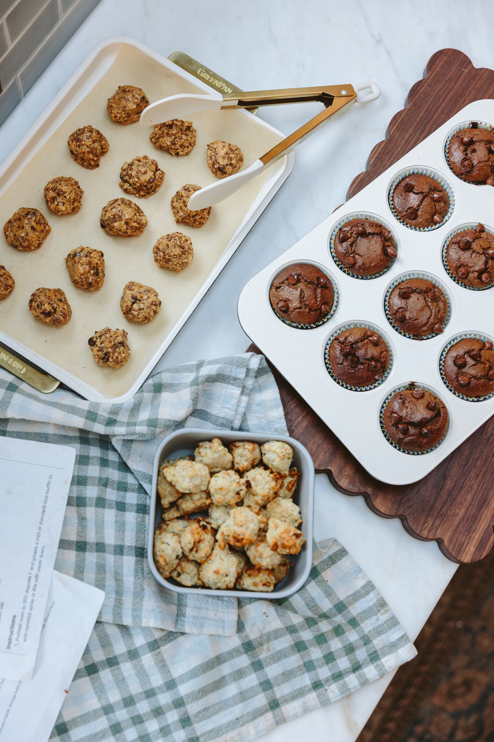 Under “Things I never thought I’d be so enthusiastic about when I was 22,” I’d say that “meal prep” is near the top. And yet, I legit enjoy it. Not because I love to cook, I’m still not very good. But because I love a project that keeps me home on a Sunday afternoon, so I can listen to my gripping podcasts and audiobooks, have some me time, and enter the week armed with a few good meals and non-ultra-processed snacks my kids will actually eat. I’m sure there is some sort of neuroscience around the dopamine released when you feel like you have your shit together. Like how buying new workout clothes makes you feel like you’ve done something good for yourself. Now, I vascillate on what I meal prep (on a perfect Sunday I might roast a chicken for dinner and leftovers, then make broth from the bones, make a big soup for Brian and I, cut up veggies for salads and make homemade salad dressings) but today I’m showing you the three VERY easy healthy snacks we make for the kids (and us) that they actually love.
