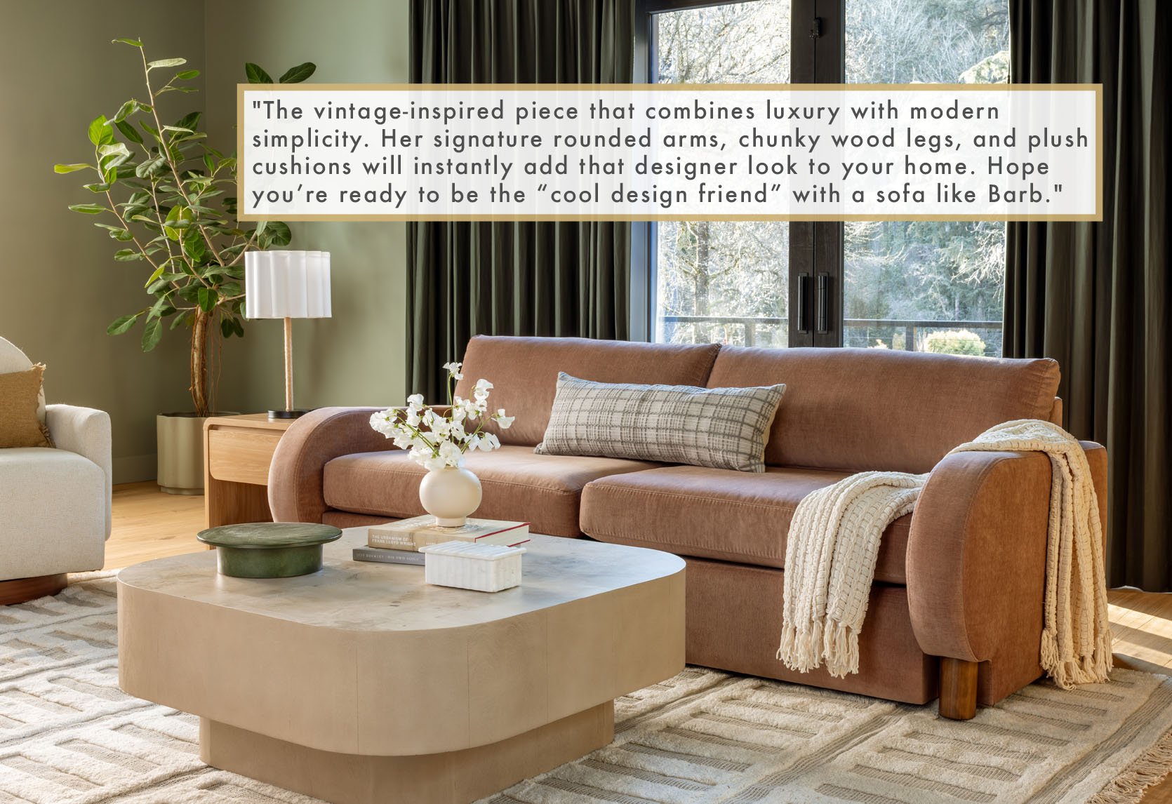 I love the Oscar! We have a real life Oscar and are in desperate need of a new couch. Not sure I need any more hints on what to get! But I really wish the olive were velvet- I’m replacing a perfectly 2000’s baby blue velvet couch and I love the material for cleaning. We’ve gotten almost 20 years out of it!