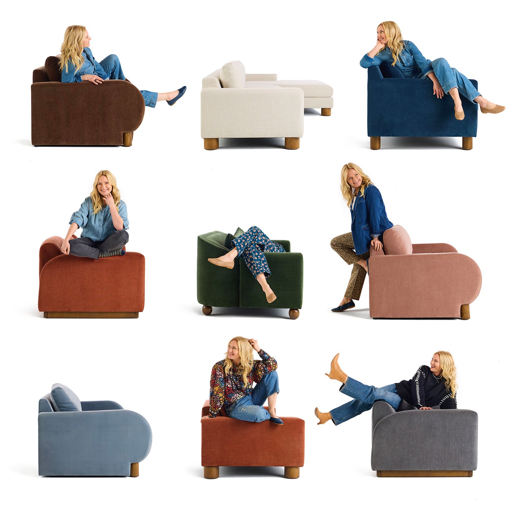 For the first launch (which we are already adding to), we have 7 different styles, and they all come in a few colors and sizes (some sofas + a chair). The design process was both super enjoyable and very painstaking, with three trips to the factory to ensure that our vision and level of comfort were perfectly executed (with many tweaks along the way). We prioritized comfort and style equally (which is hard!!) and tried our best to keep the price point affordable enough for high-quality pieces.
