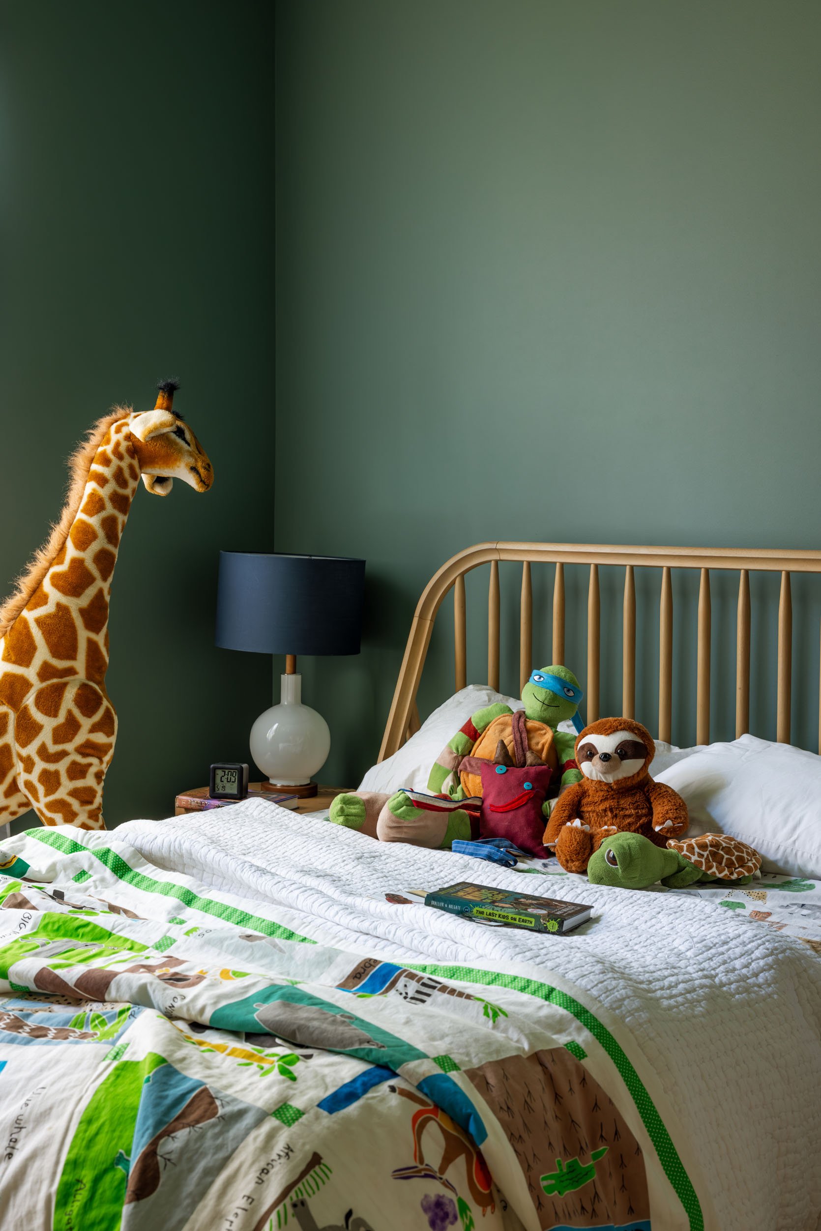 I have wanted to use Studio Blue Green SW 0047 for a long time – it’s so good. Frank’s room (my nephew) is on the south side of the house and gets pretty low light despite having two windows. So we embraced the coziness and painted it (and the ceiling) this darker blue/green. It’s so high impact while strangely being soft on the eyes. I can’t wait to decorate this room (up next!).