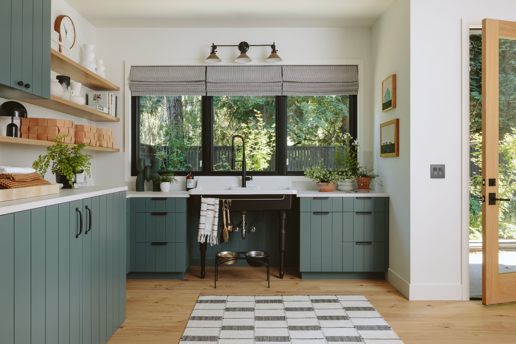 Rocky River SW 6215 was the first paint color we chose, and we all liked it immediately. It was actually our favorite. I didn’t have to hem and haw, and easily moved on. Thrilling! It’s a fantastic, darker green that is still subtle, while having impact. Technically, it’s green with a lot of blue/gray undertones, with a reflective value of 15 (so it’s not going to reflect light well). It looked so pretty with the white oak flooring.