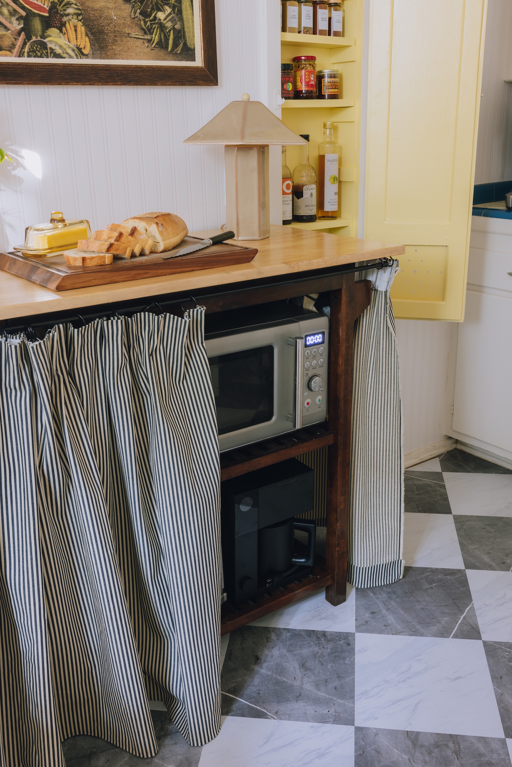 Prep Table | Skirt Fabric | Fellow Coffee Maker | Pleat Tape | Curtain Rings | Tension Rod | C Hooks