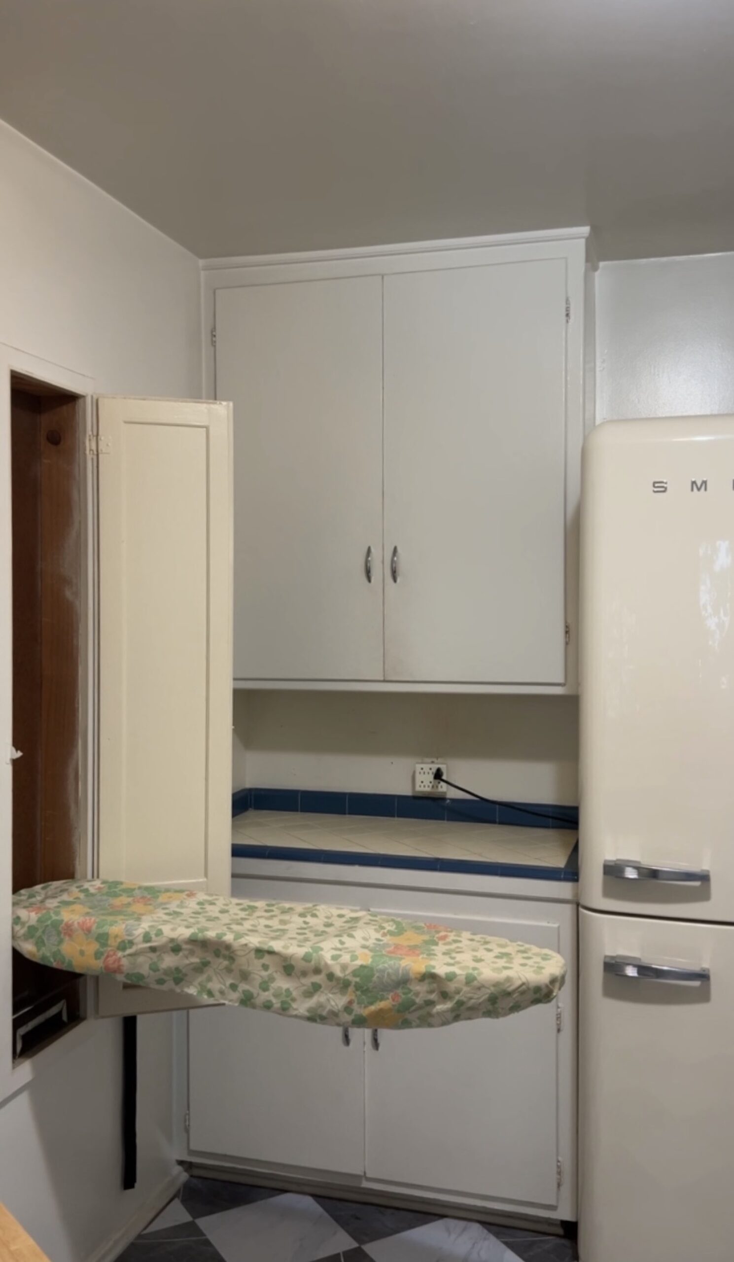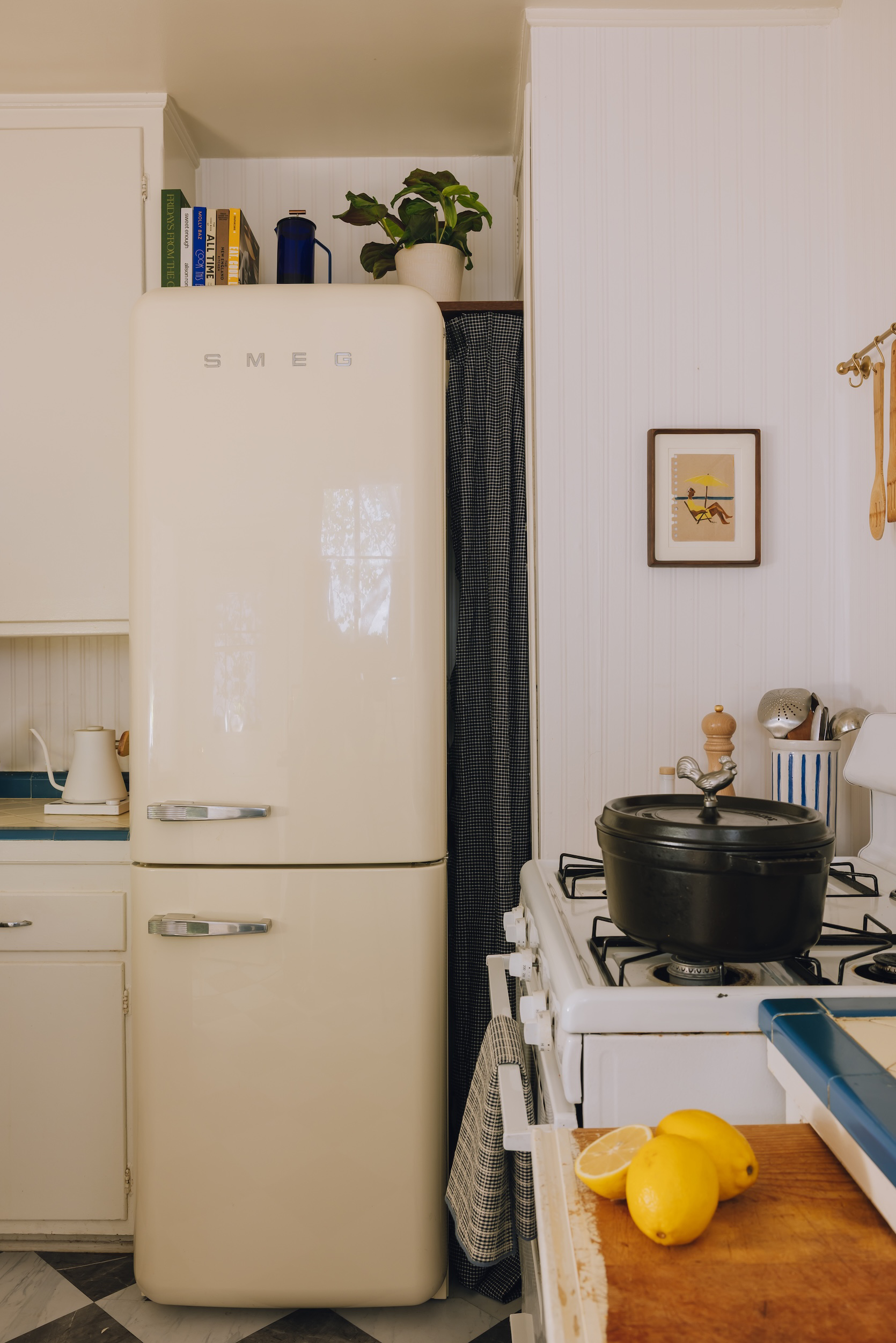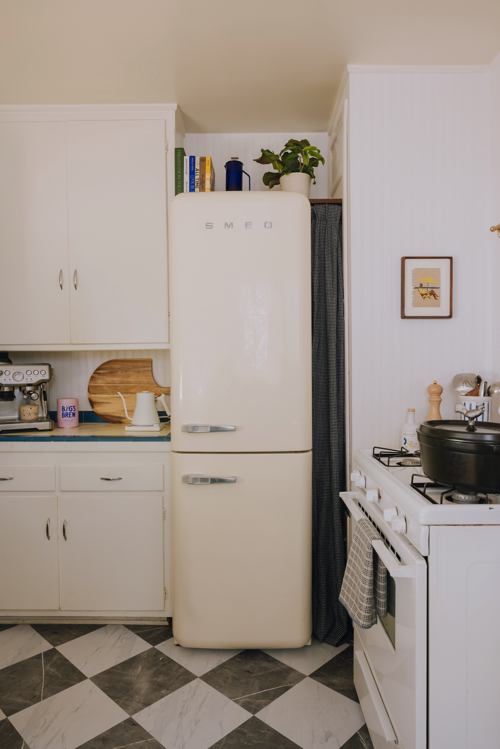 Okay, everyone, say it with me – a fire hazard! COOL! This was actually terrifying to see, but in this moment, I immediately knew I had made the right choice to get rid of this honker. Our apartment is pretty much rent-controlled, month-to-month, and is the perfect location in Los Feliz – walkable to all the stores and restaurants. So I moved in knowing I would probably have to get a new fridge to make the kitchen really usable, but it was a cost I was willing to pay considering my monthly rent was such a good deal, and the location was perfect. Also, since this place didn’t come with a fridge, I could invest in one I have always wanted, since I can take it with me into my future homes. And the one I have always wanted?! A cream Smeg OF COURSE!