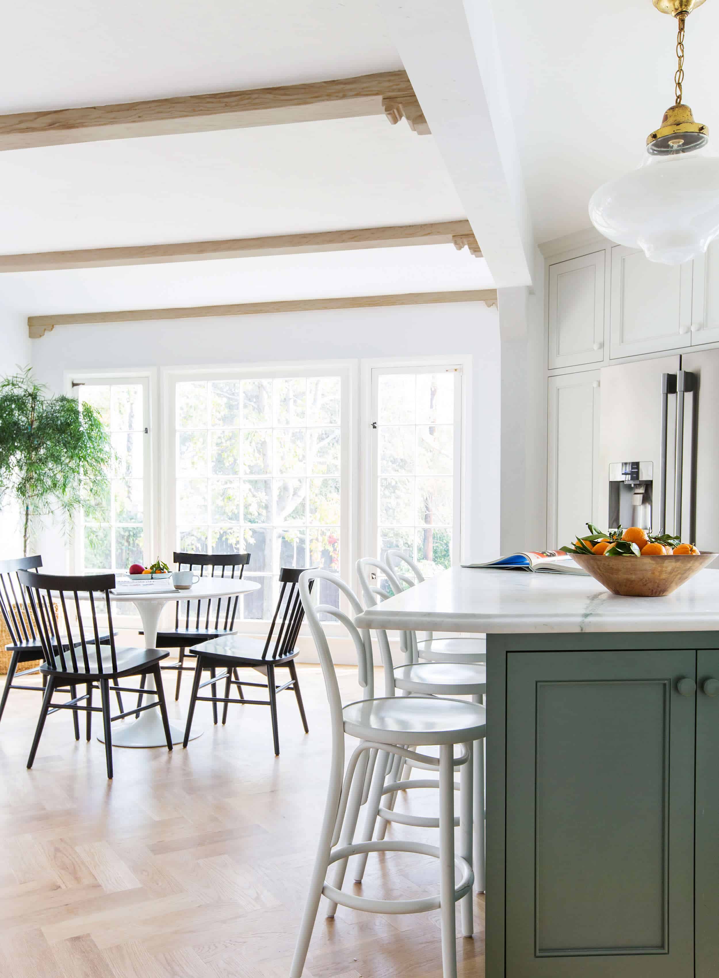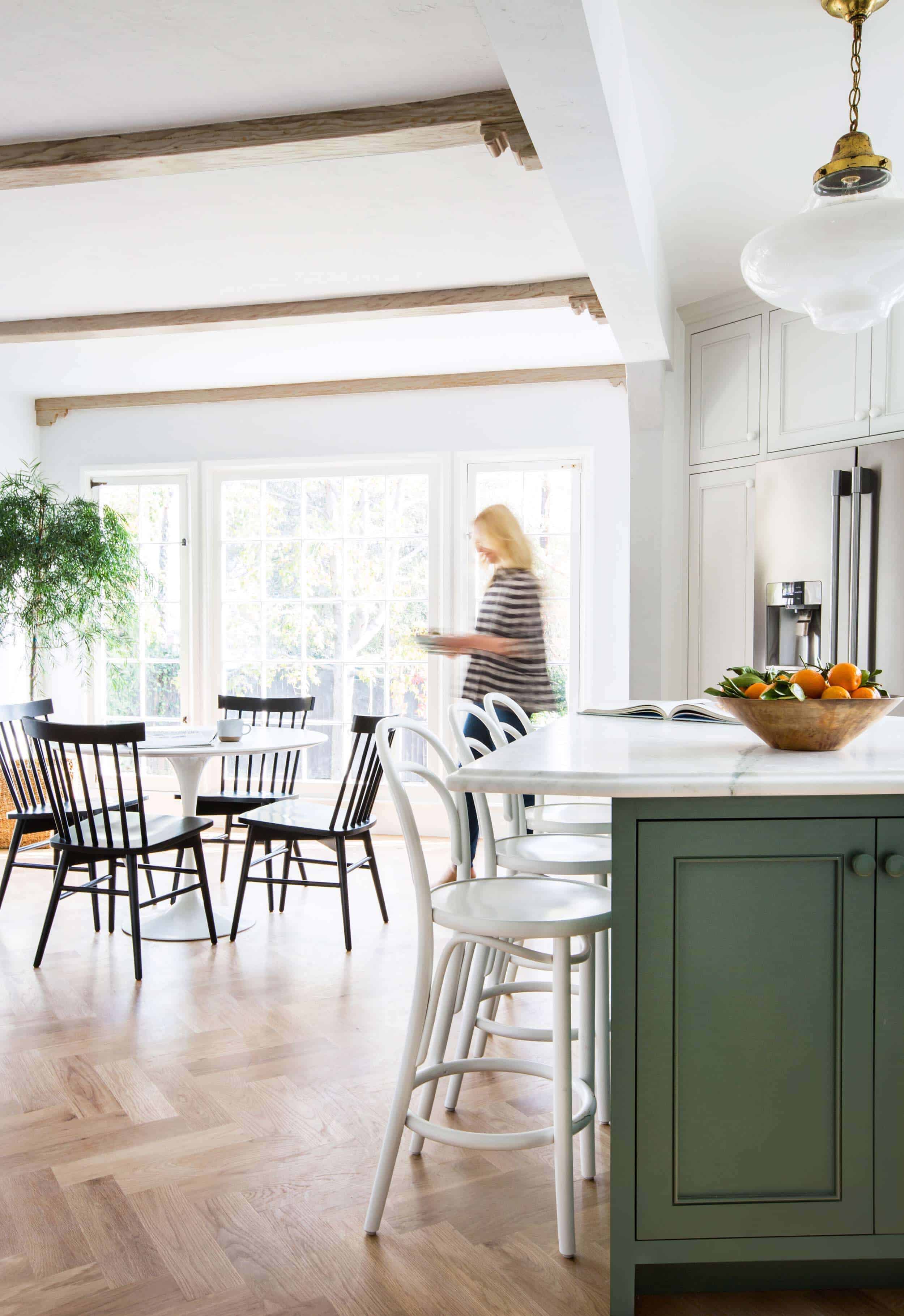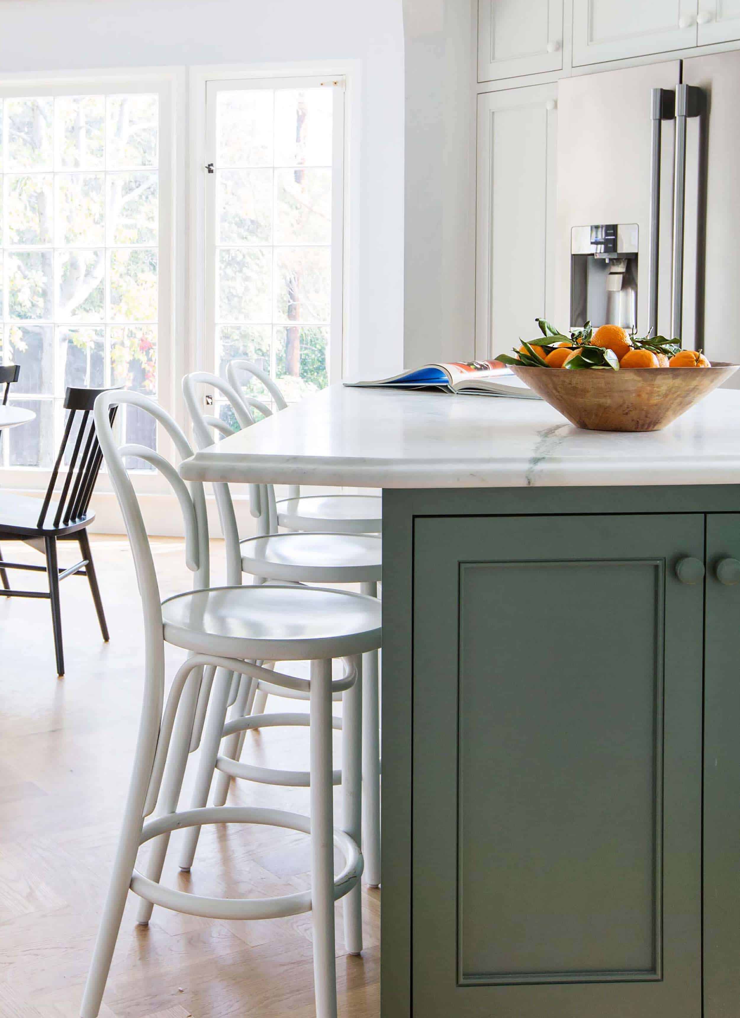 I love the understated look of this kitchen but I’d be wary of the all white stools – our stools get so much use and get scuffed very easily, I can’t imagine the upkeep on the white paint to keep it looking blemish-free.