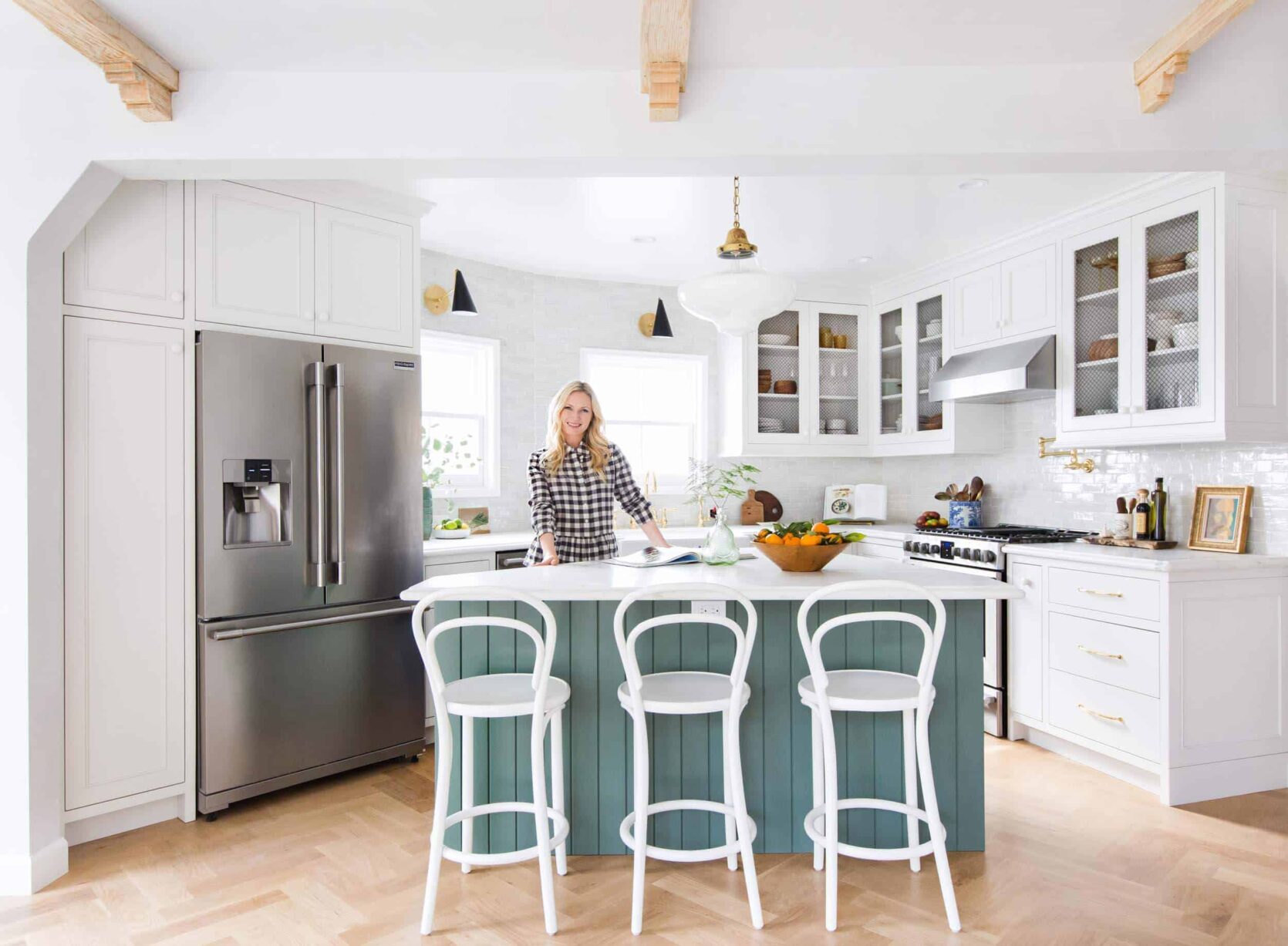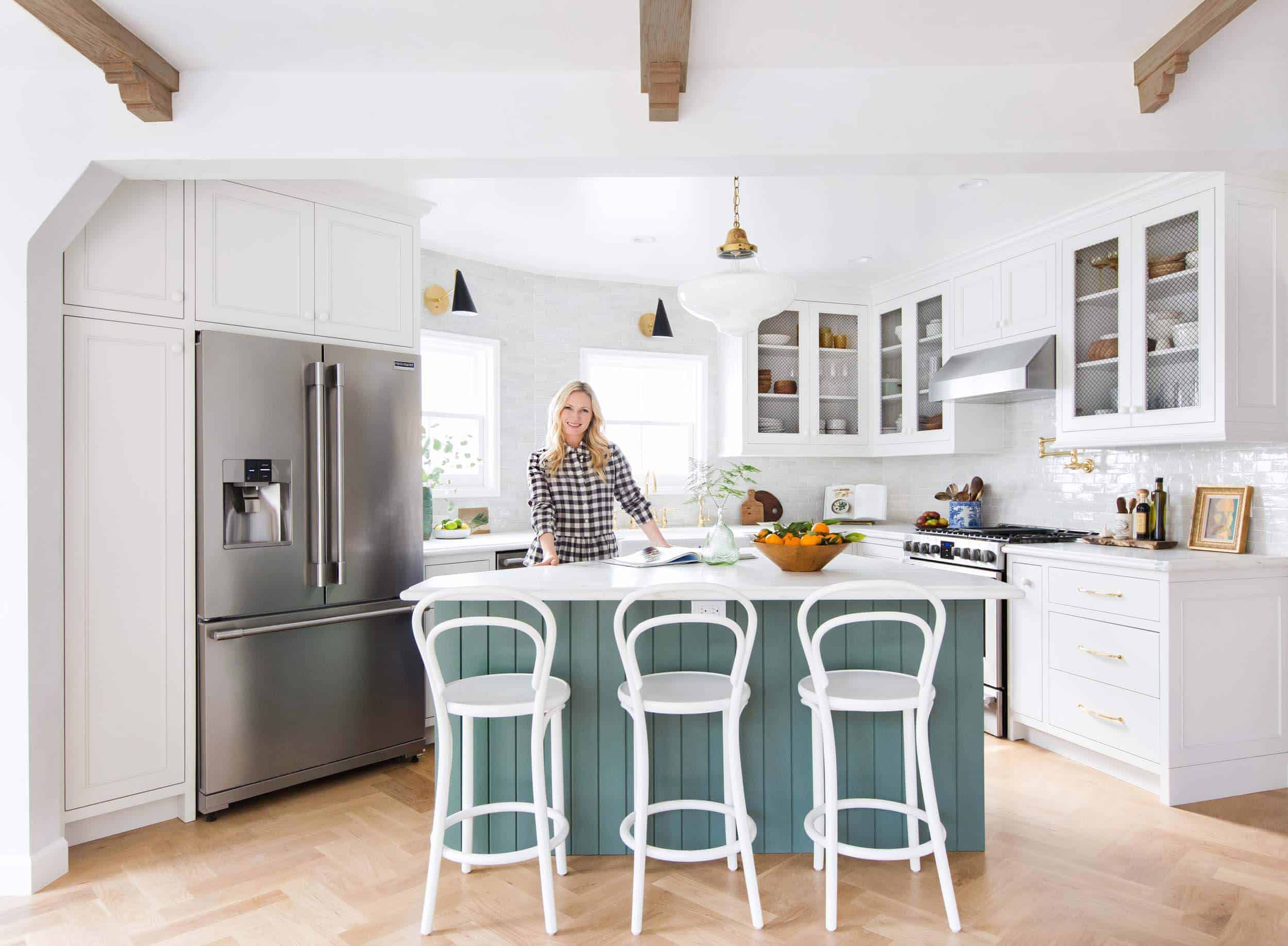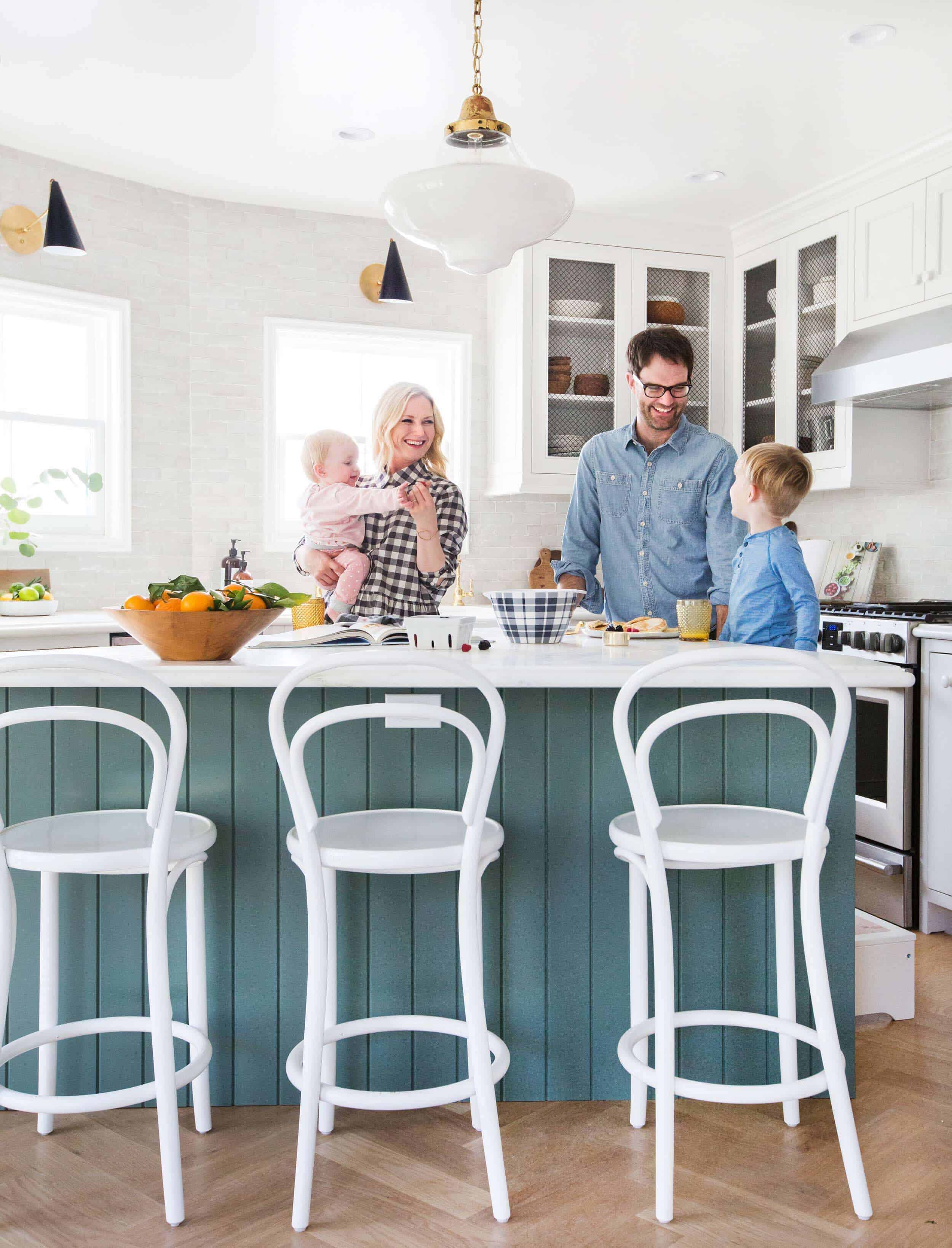 I love the understated look of this kitchen but I’d be wary of the all white stools – our stools get so much use and get scuffed very easily, I can’t imagine the upkeep on the white paint to keep it looking blemish-free.