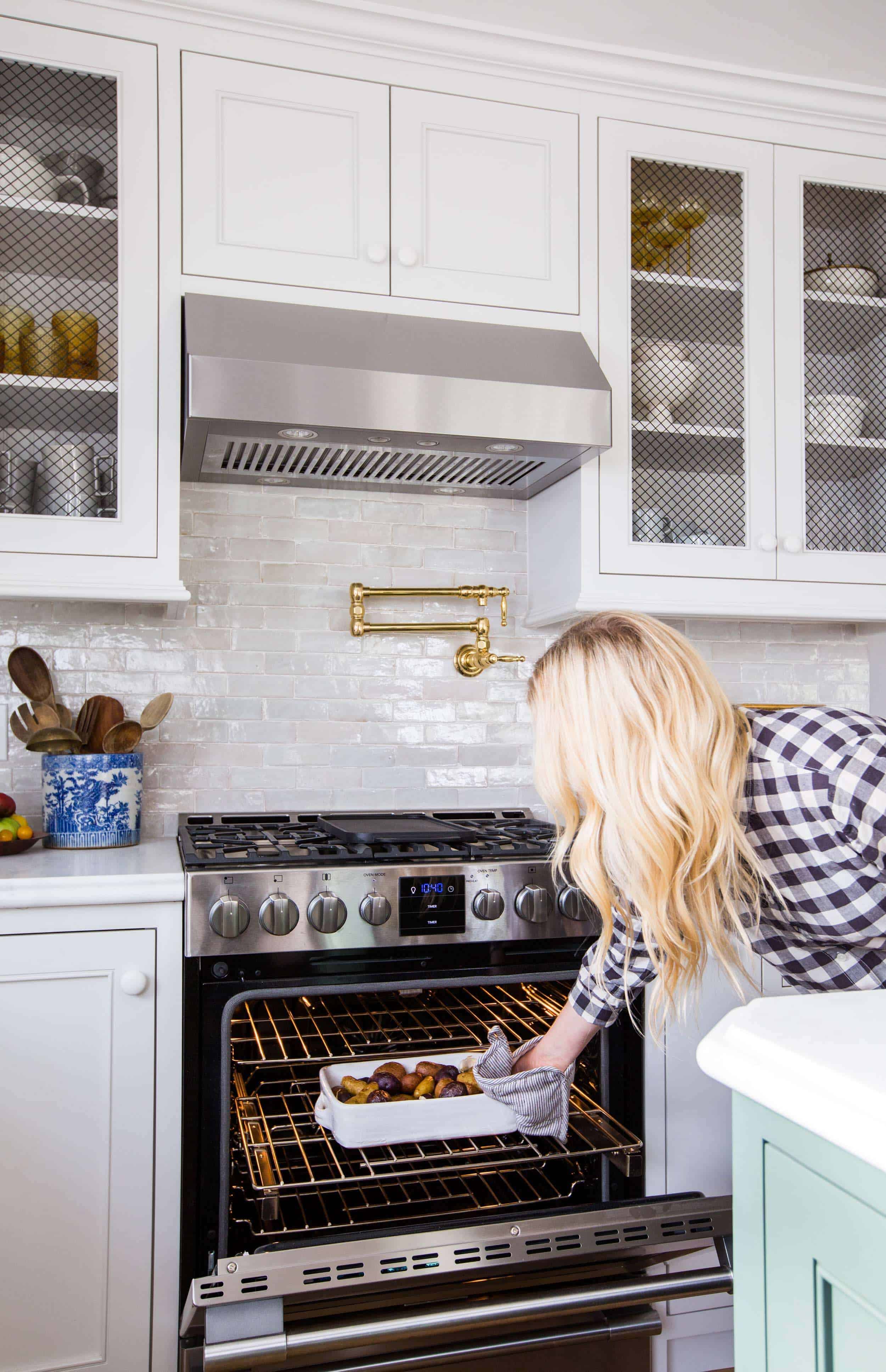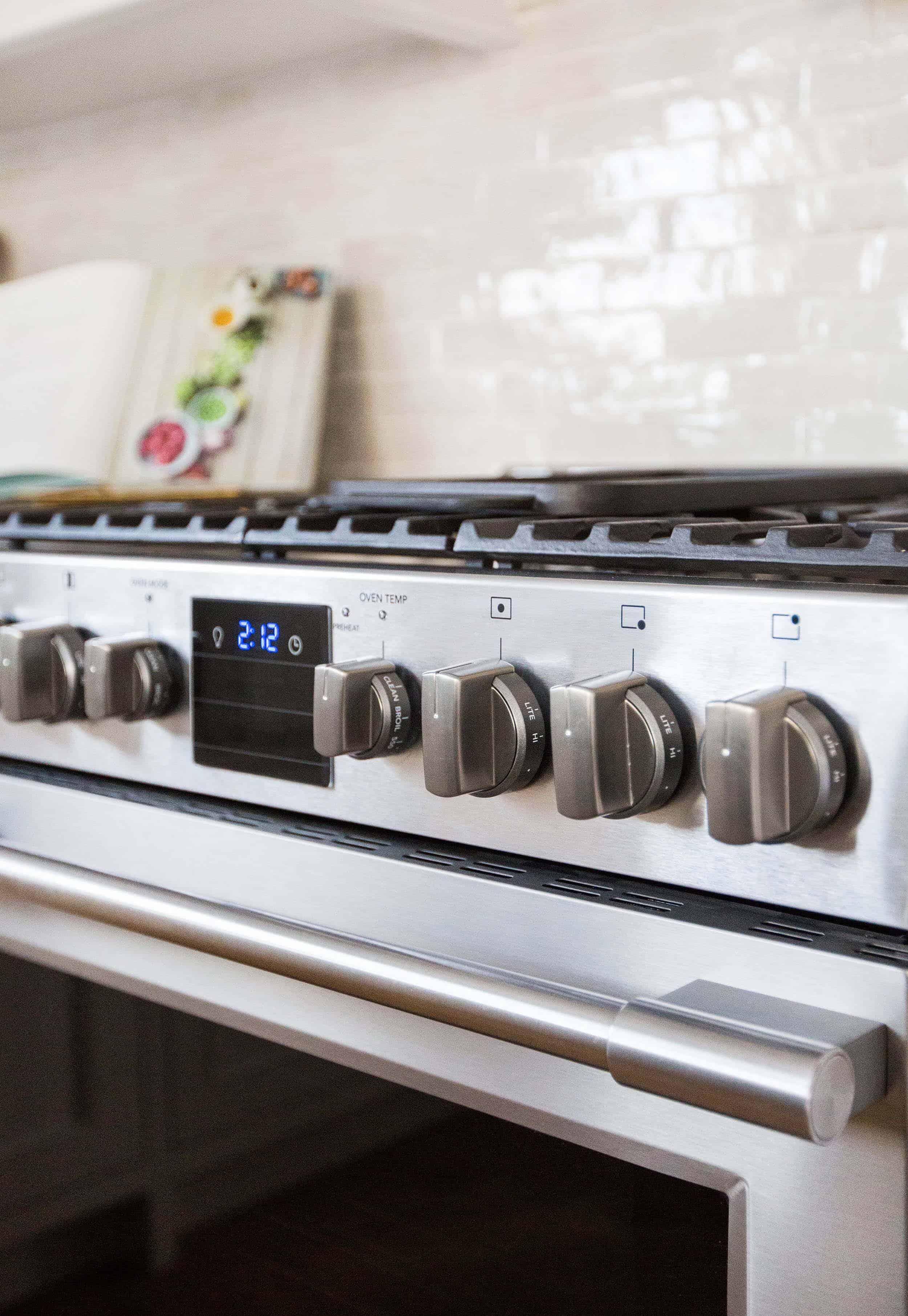 Onto the range and hood. While these have some fun bells and whistles I’m happy to say that this appliance looks really simple still. The hood has a light and fan that is easy to use and the range has a warming setting in the oven (which I didn’t have before) which is a lovely option when you are trying to keep food warm for the whole family.