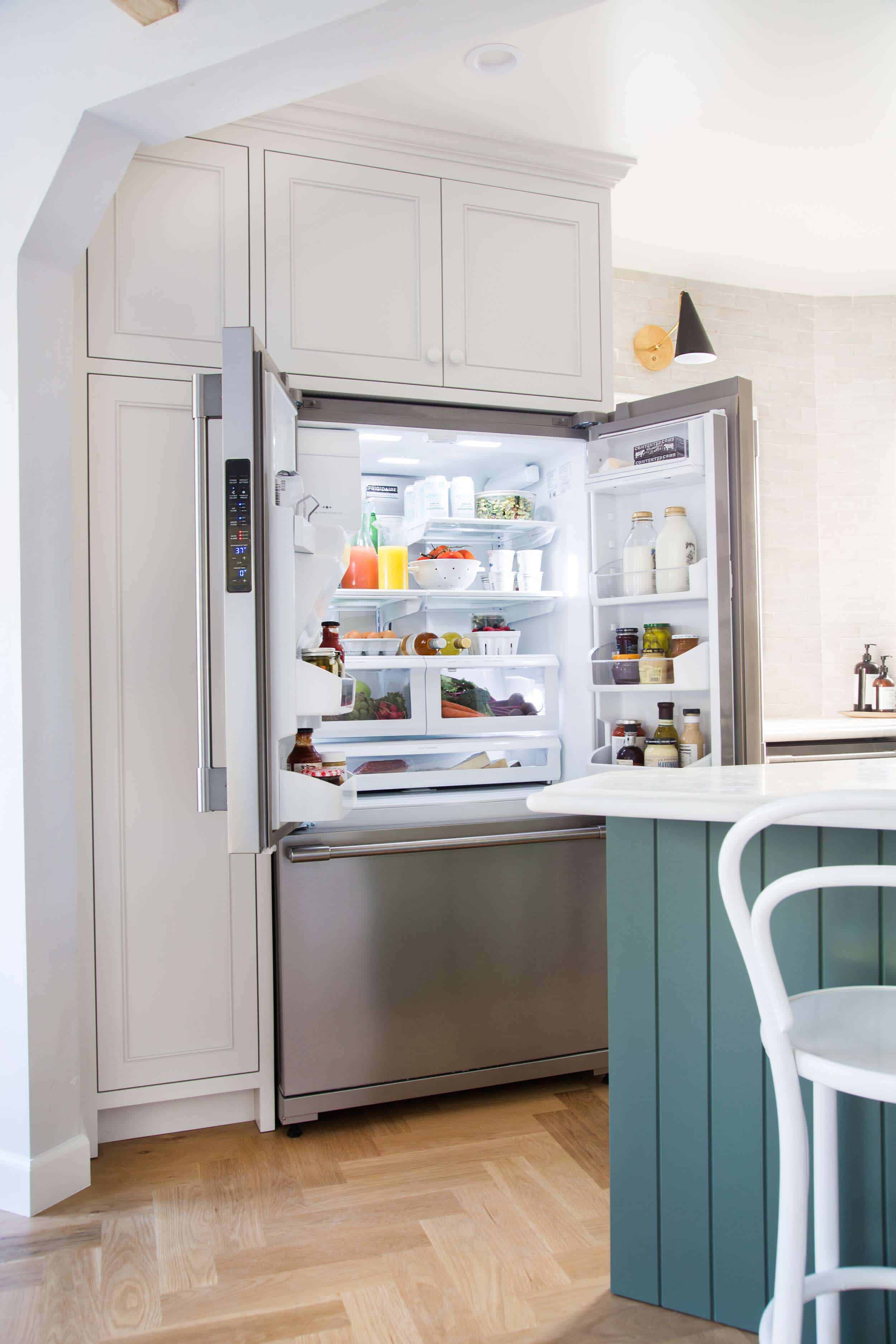 We previously had a side-by-side fridge (our kitchen was small and we couldn’t fit a larger one) and I have to say that it’s insane how much easier to access and how much bigger it feels. Space isn’t all about square footage, it’s about how it’s laid out. We haven’t moved in yet, but we styled it all out for the shoot and just those two days there shooting it made me very excited to have it.