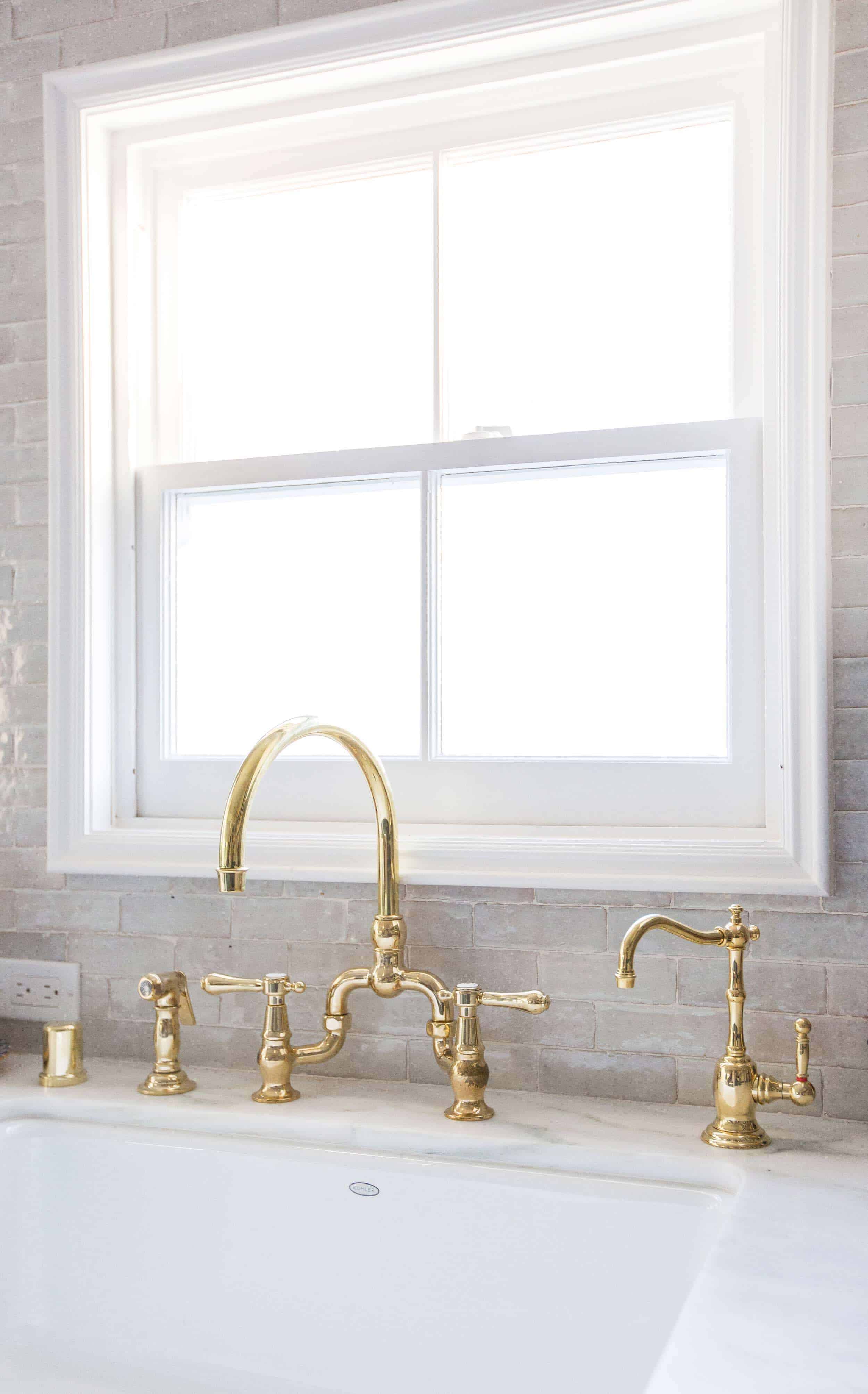 I love how the knobs are quiet and feel a bit country and certainly unfussy. Whereas the handles feel sturdy and are un-lacquered brass (to match the faucet) and will patina beautifully.