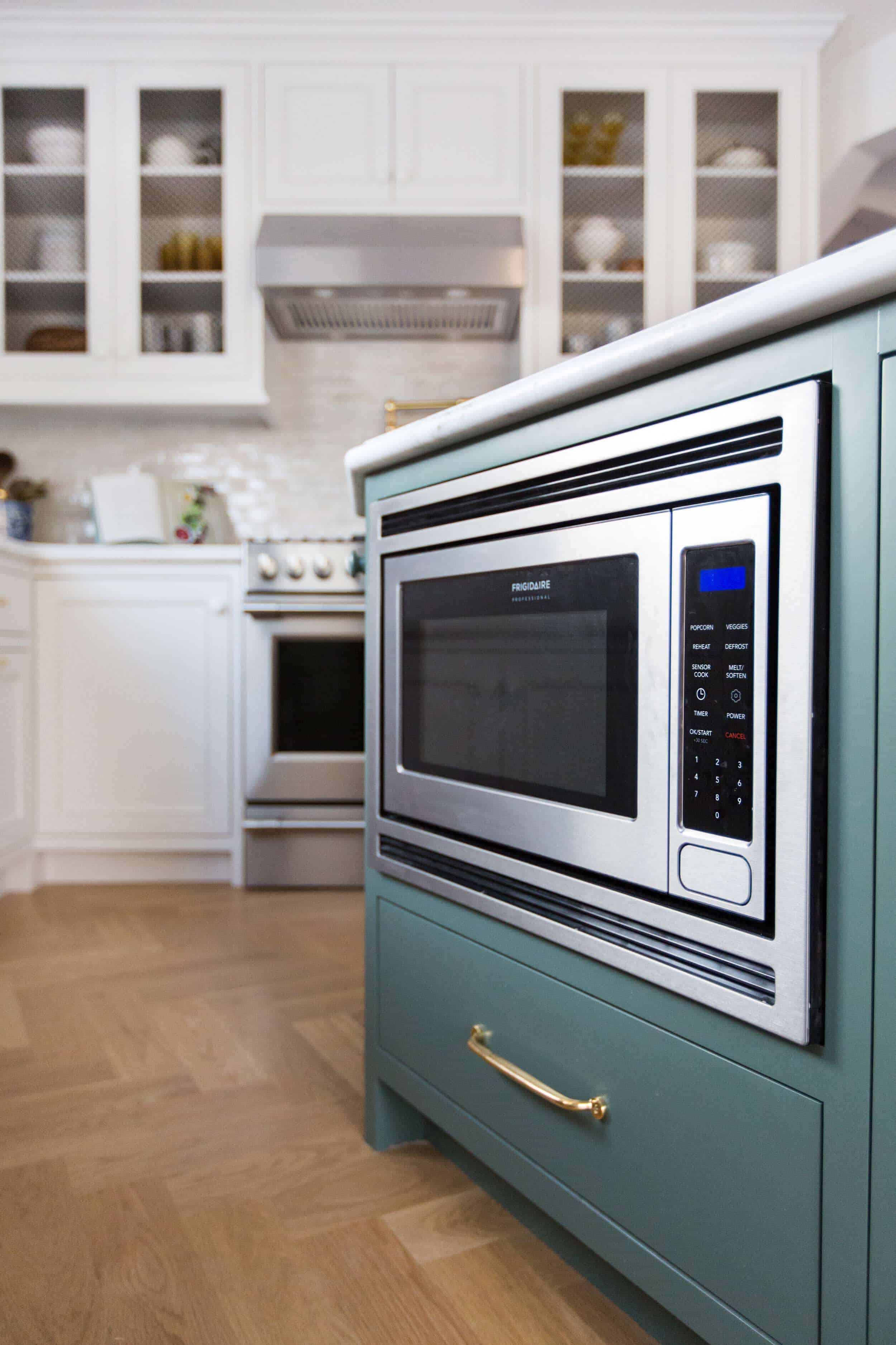 Plus, when I would cook on the stove, the handle to the microwave would get SUPER hot. I much much much prefer a tucked away microwave, just like Emily chose. Plus, microwave “hoods” never really work. A true range hood is far preferable if you can swing it.