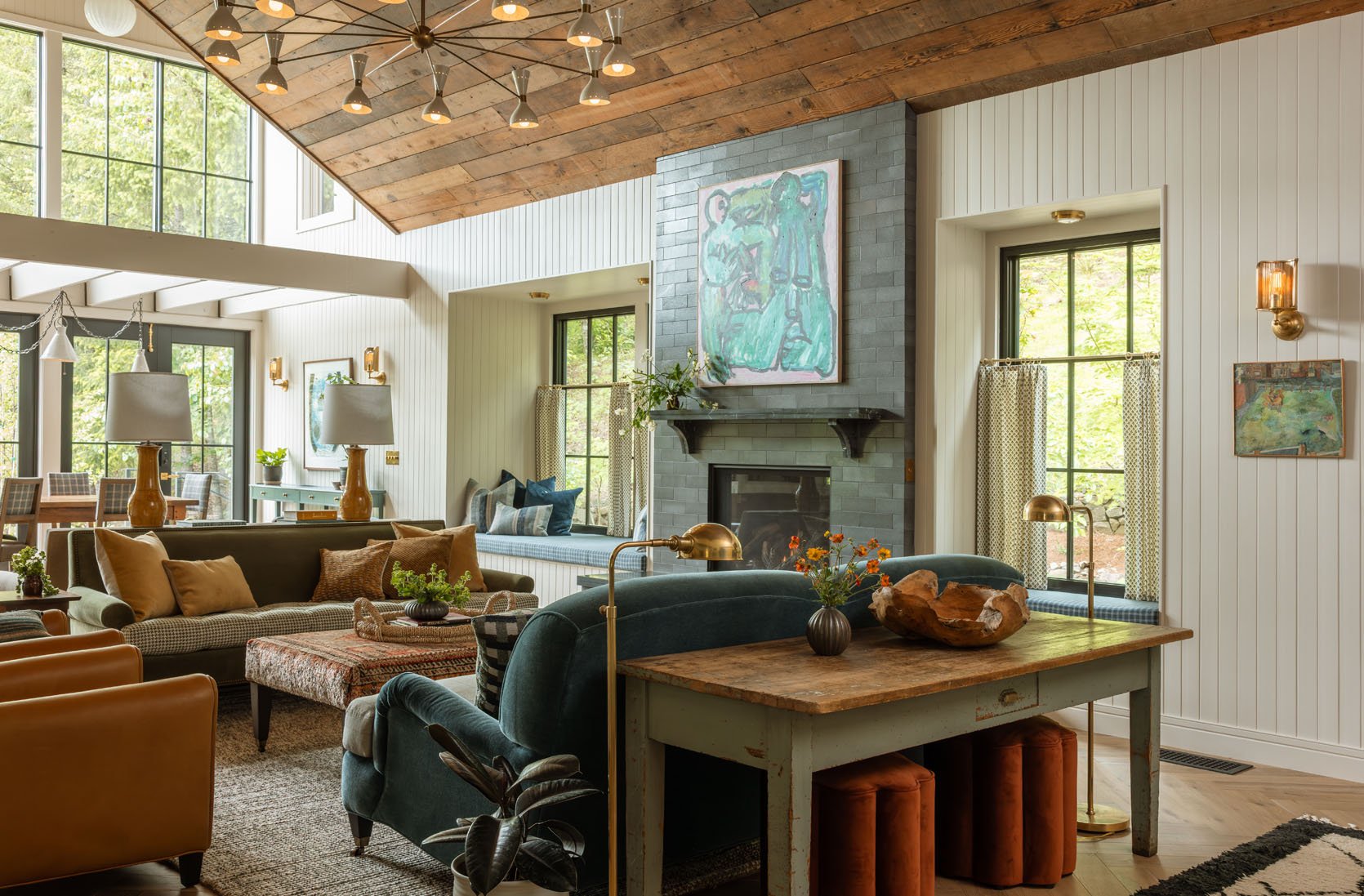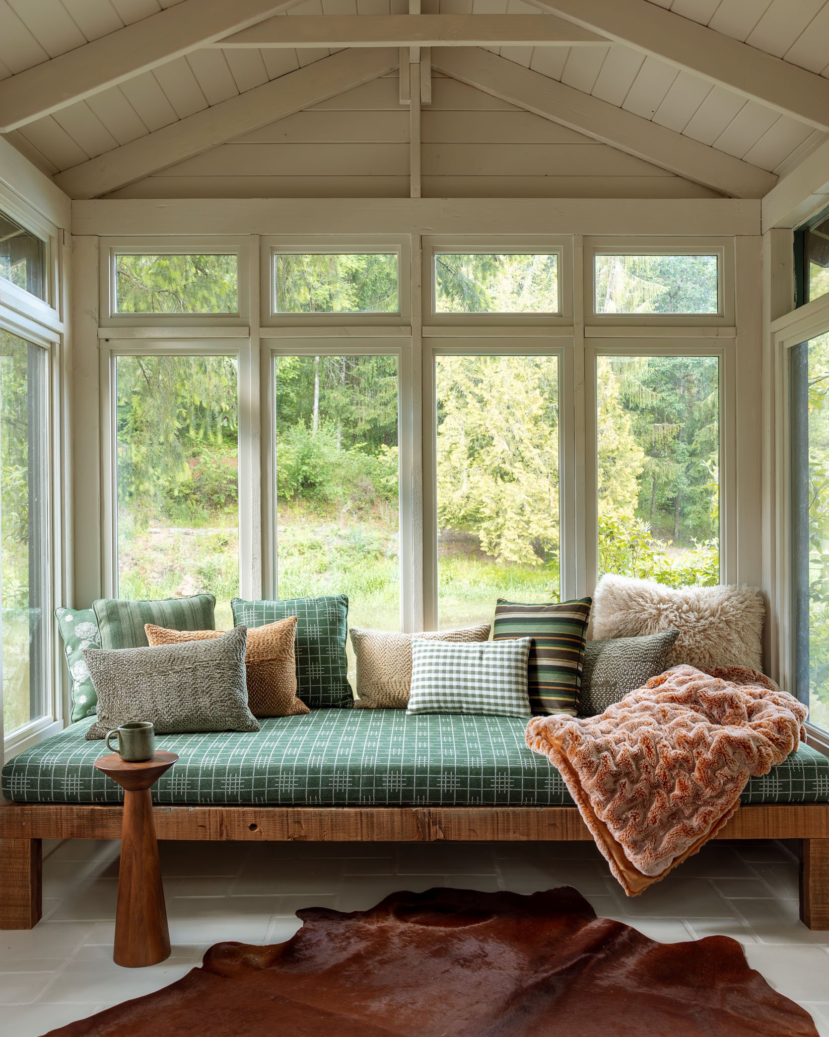 The ceiling change in this room adds such contrast in both style and light. The architect, Beebee Skidmore, really knows how to constrict and expand spaces in a way that feels dynamic (and yet so quiet). The niches do the same thing – while in them you are cozy, but the rest of the room still has a lot of light, creating an unpredictably good vibe. So much inspiration in this lodge.