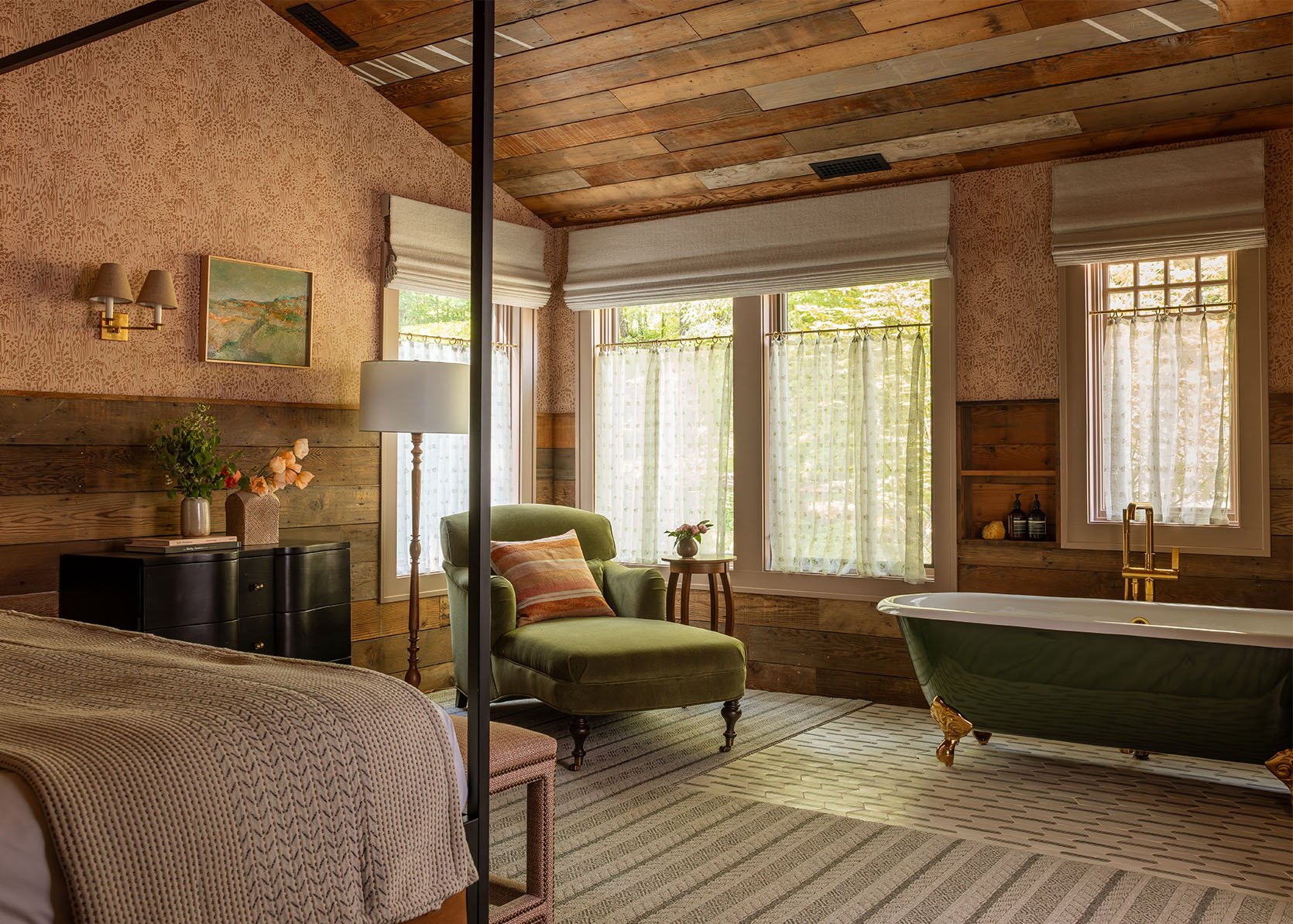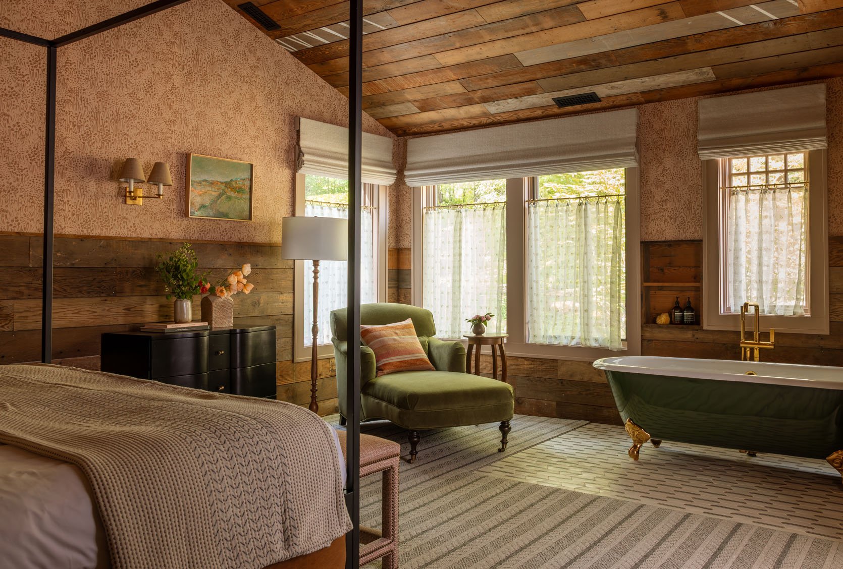 I love so this project. It is sooo special. It’s inspiring to see “rustic” and modern mixed so well. I’ll be revisiting these details over and over for our own home. BeeBee’s talent is a highlight because I think we’ve all seen huge open spaces that just feel like huge open spaces. More 80s style great rooms would benefit from strategies like that dining room where you get the best of both high and normal size ceilings…. but also wanted to say THANK YOU to the owners for considering ADA needs. As my parents age we are continually seeking options that can accommodate mobility issues (not full on wheelchair but assistance needed). Accessibility seems so often overlooked in design-forward hospitality properties.