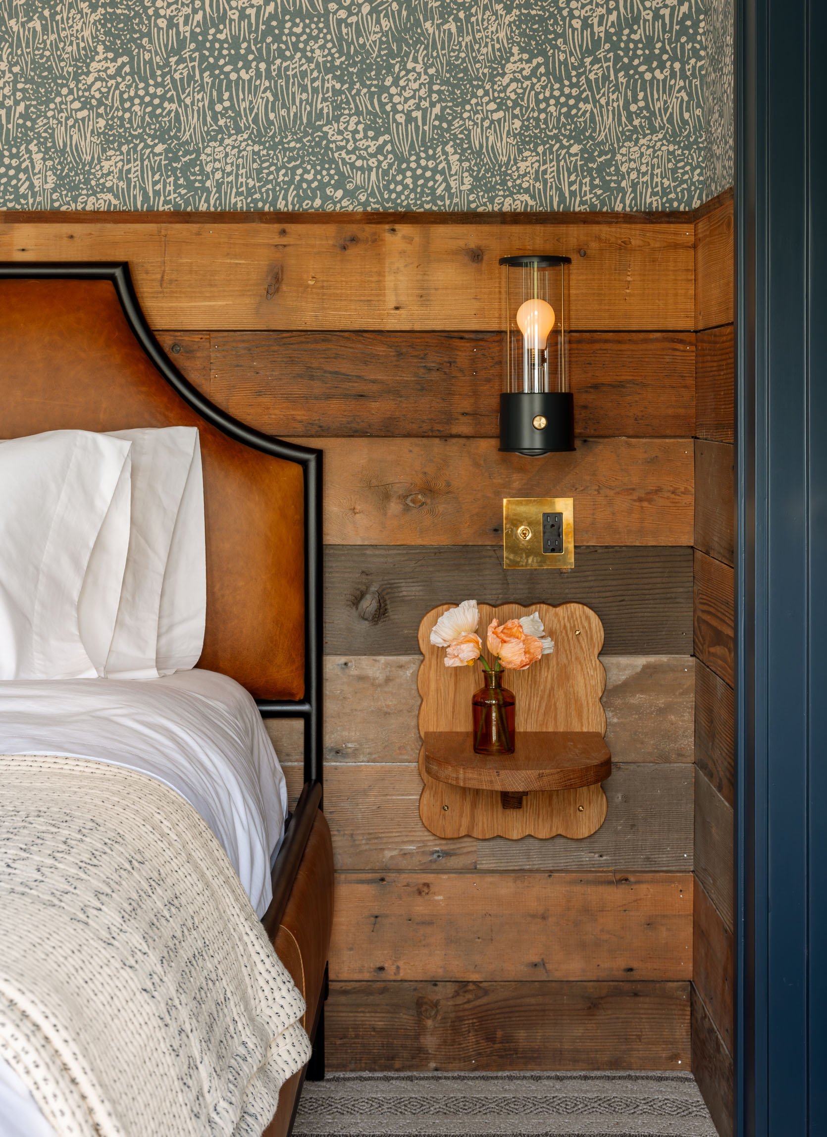 This room was a favorite because of the windows (which were original) and the color palette. I have to say I would have been nervous to do the reclaimed wood and the wallpaper, fearing that it would be too busy or overwhelming (and maybe in a home it would be, at least for me), but as an experiential space it’s so incredible and exciting. There is enough going on that it feels balanced, and your eye moves around, lands, then moves again in a really fun way.