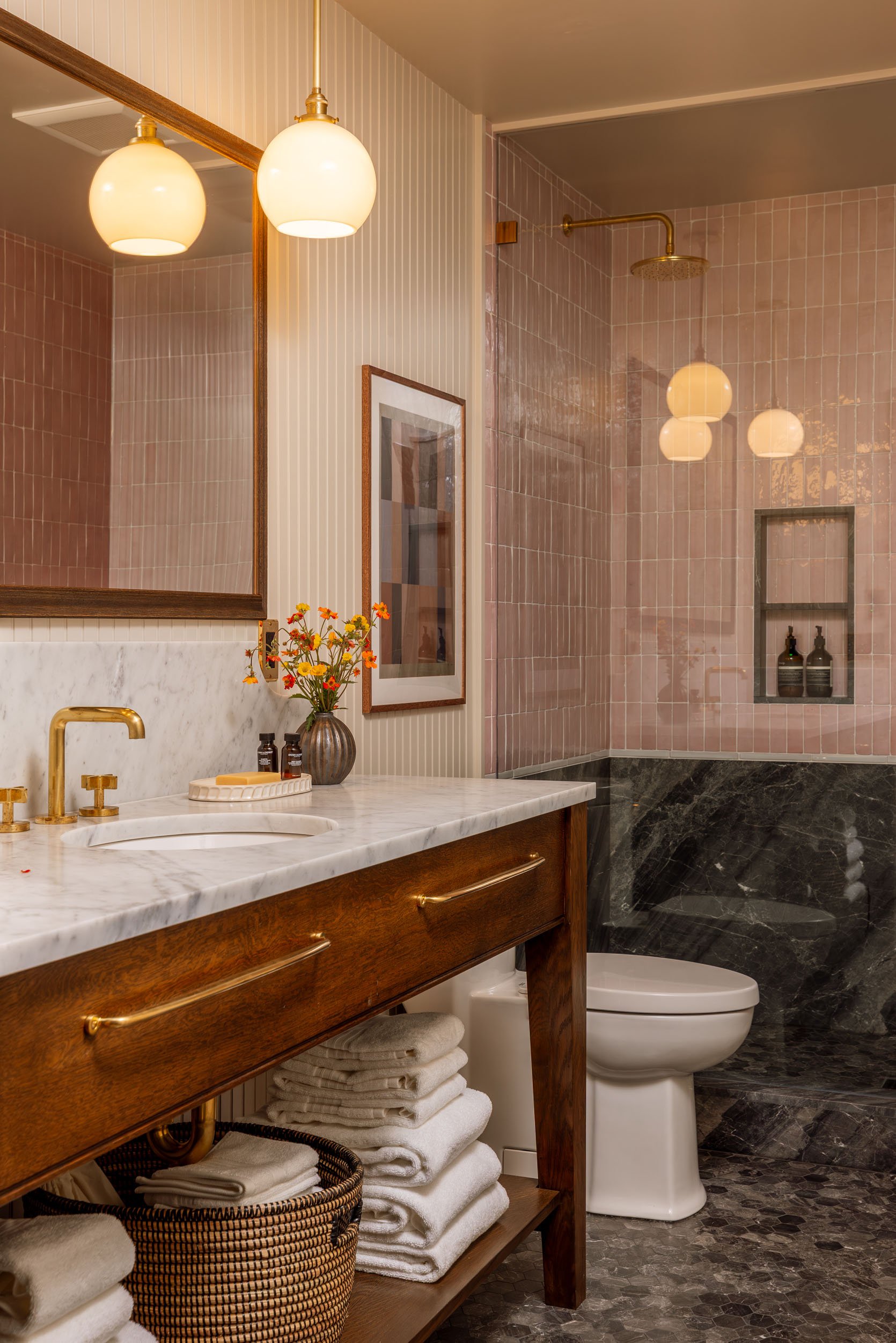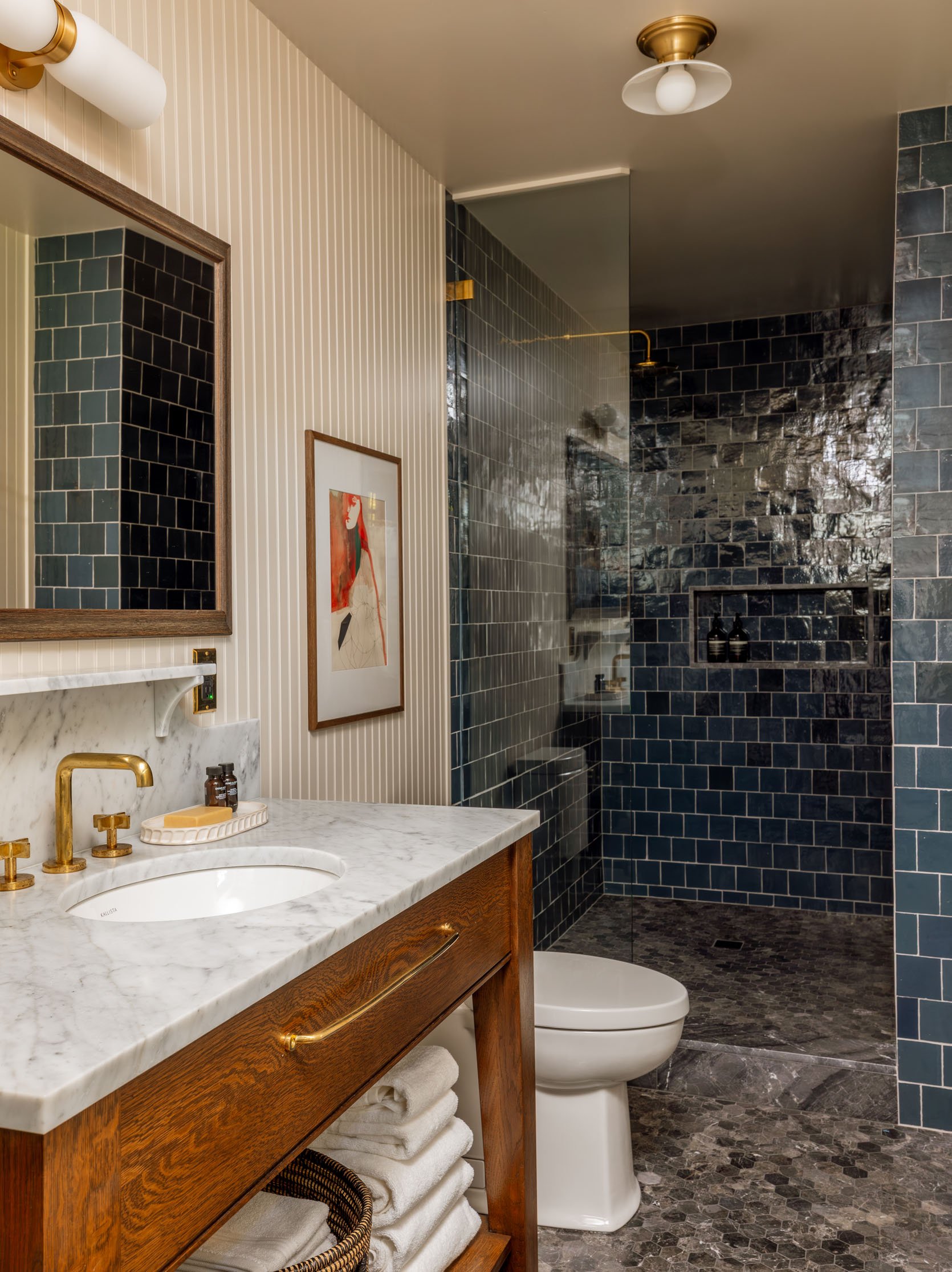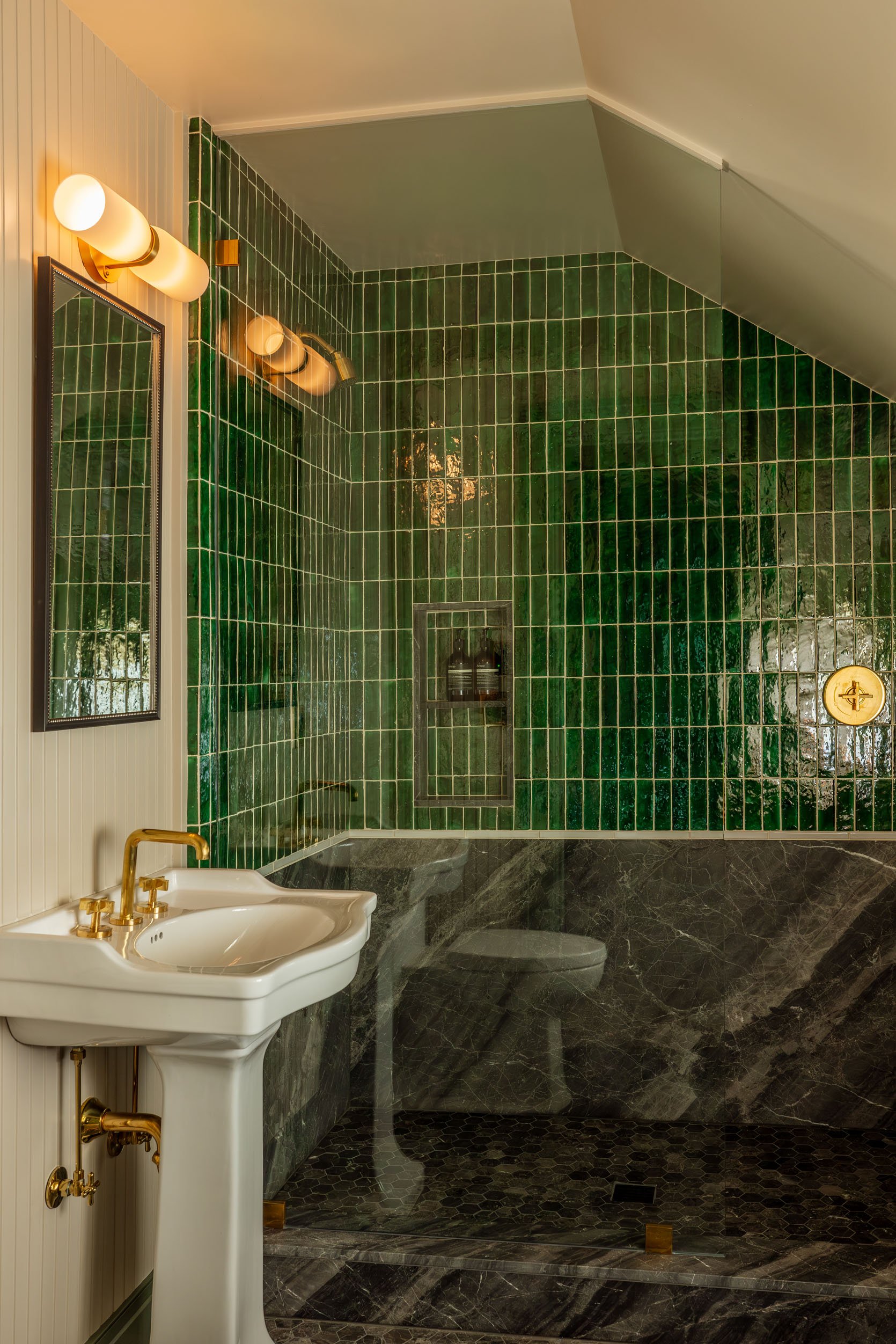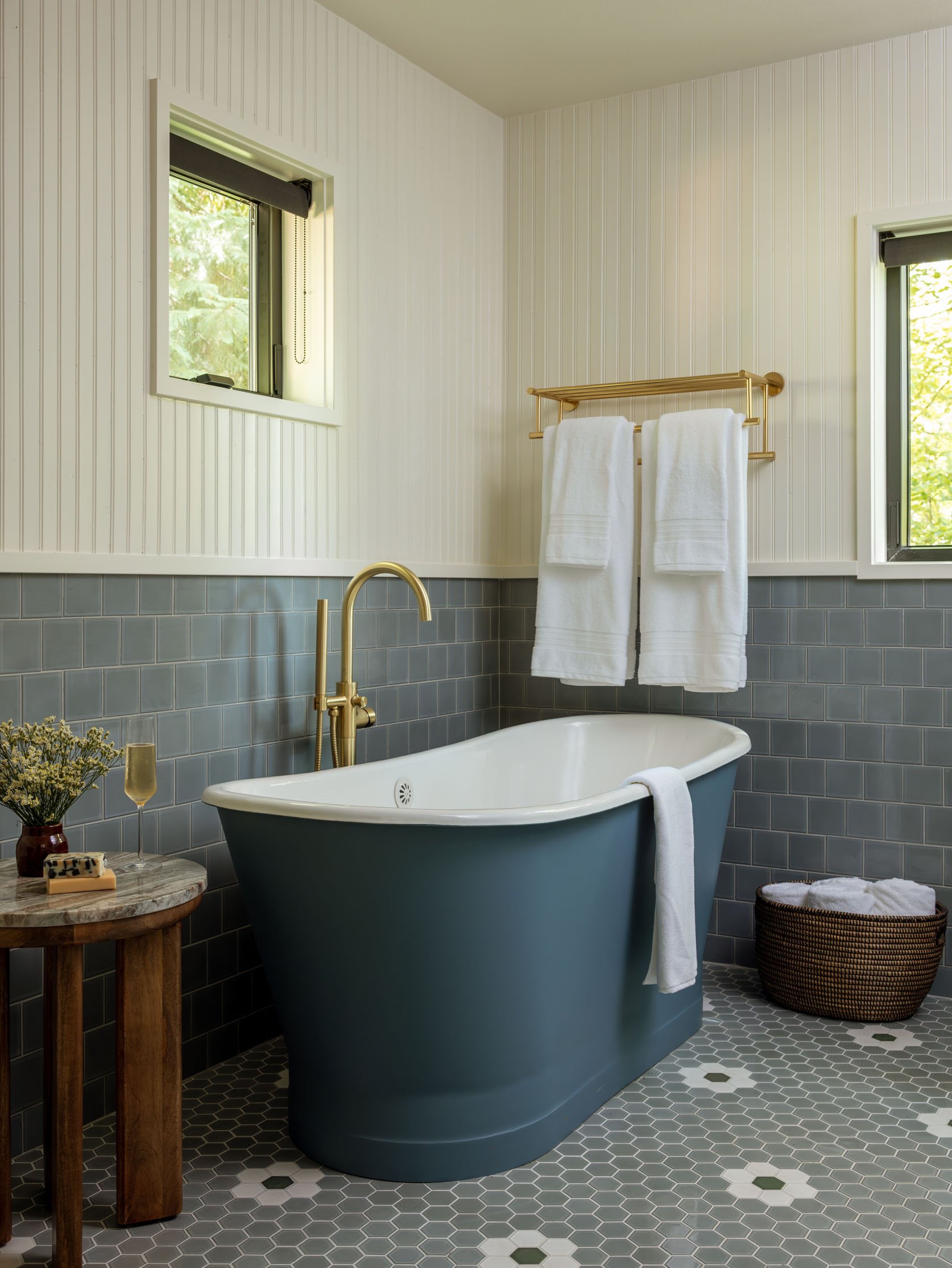 The tile combination and the paneling felt so sweet and cottagey, in a modern way (with a lot of updated, luxurious amenities).