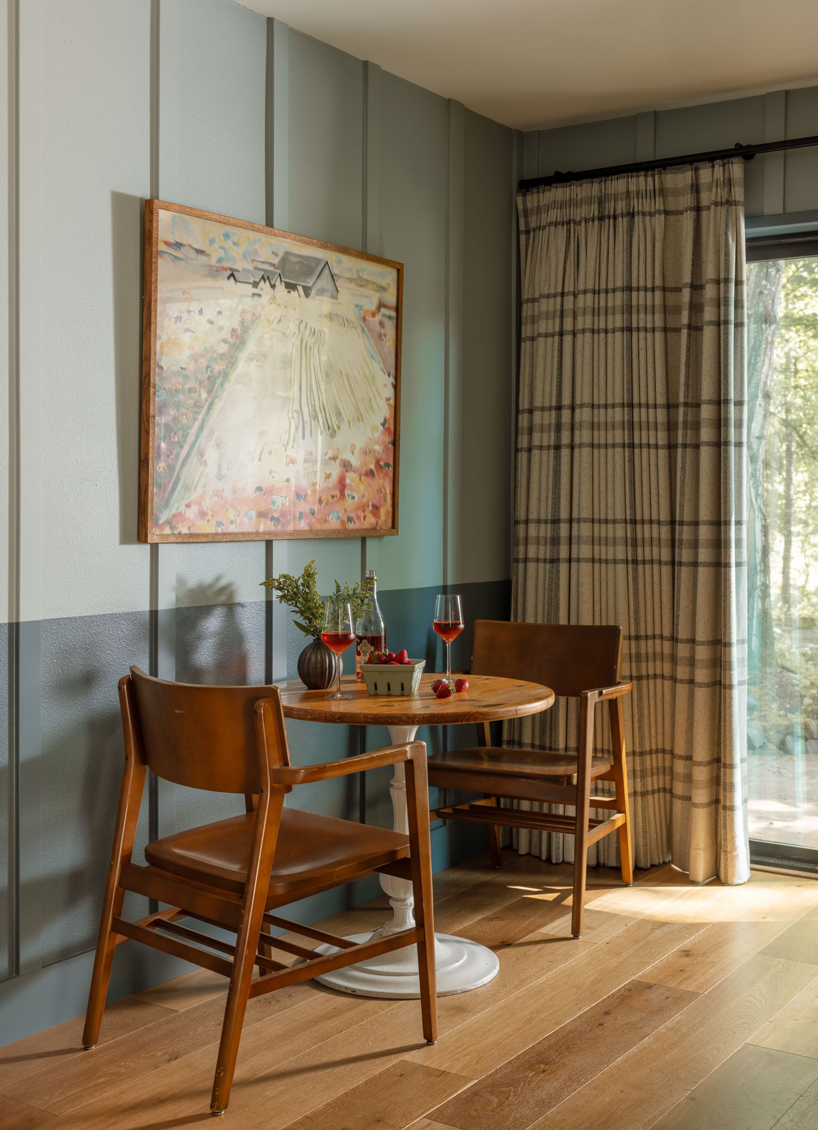 I think one of the most powerful moments of the whole property is the dining room – not the table and chairs, necessarily, but the chandelier on the beams, the windows above, and the feeling of coziness and expansiveness at the same time. Truly special to sit there.