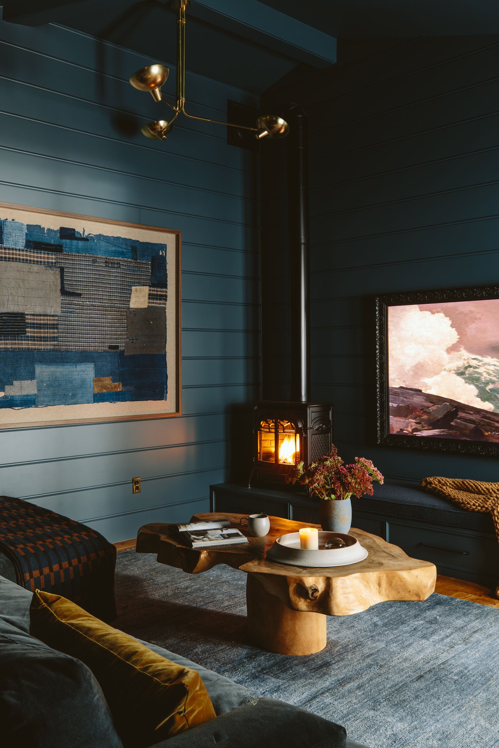 I know that Slate Tile SW 7624 and Smoky Blue SW 7604 look similar but they ARE NOT the same, lol. Slate Tile has more green in it, but they are close. I love this color and would use it over and over again. It feels moody and really pulls you in, which we wanted for this intentionally darker space.