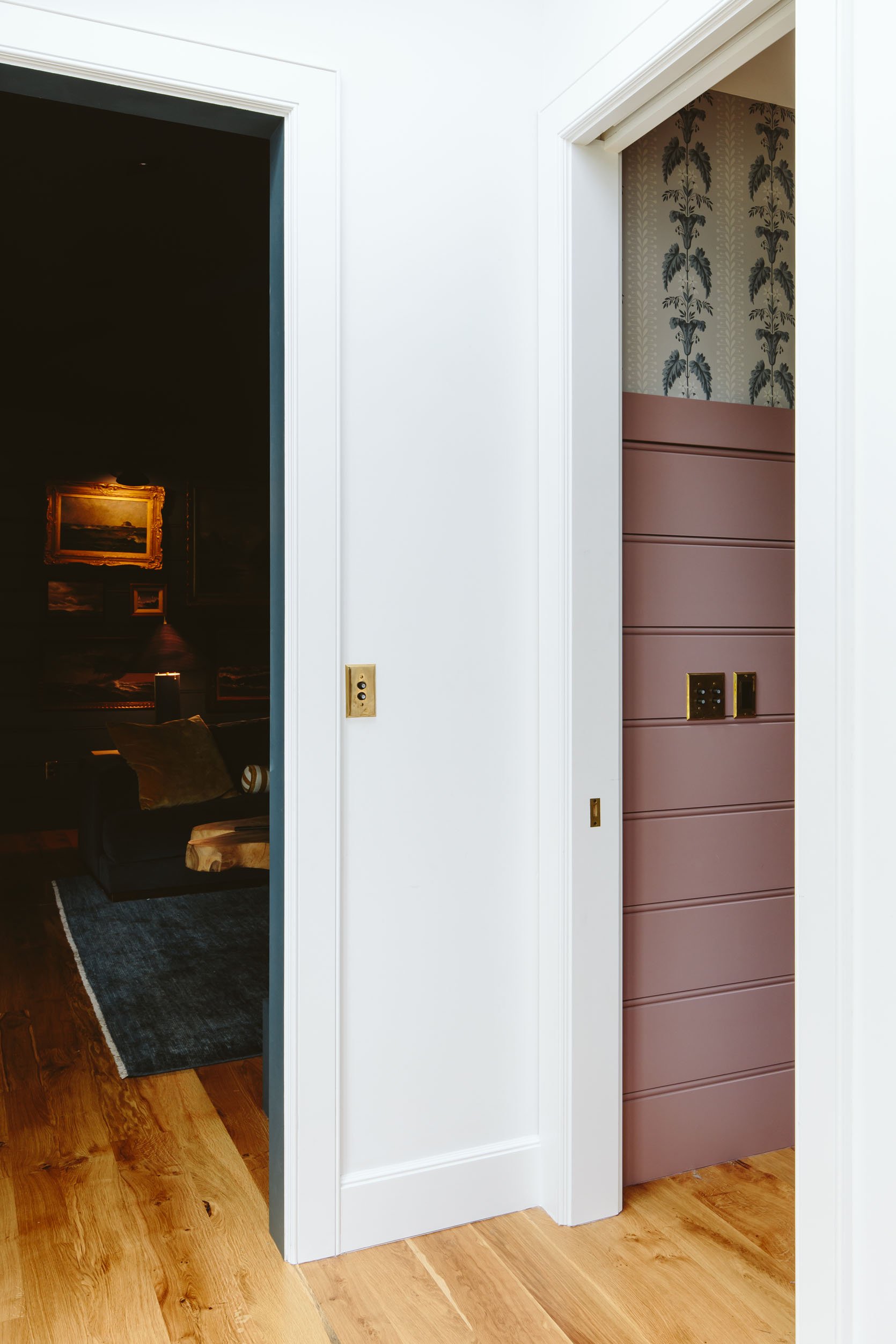 Oh I LOVE this color. Cocoa Berry SW 9078 (Emerald Int in satin) is a really really warm dark mauve that feels so calming and complementary to all the blues we have in the house. I’m so happy we added this color to our overall palette because as you’ll see below our guest room is a beautiful blush color and I recently used Glamour SW 6031 which are all on the same color strip (from the Sherwin-Williams color fandeck). I love them all so much.