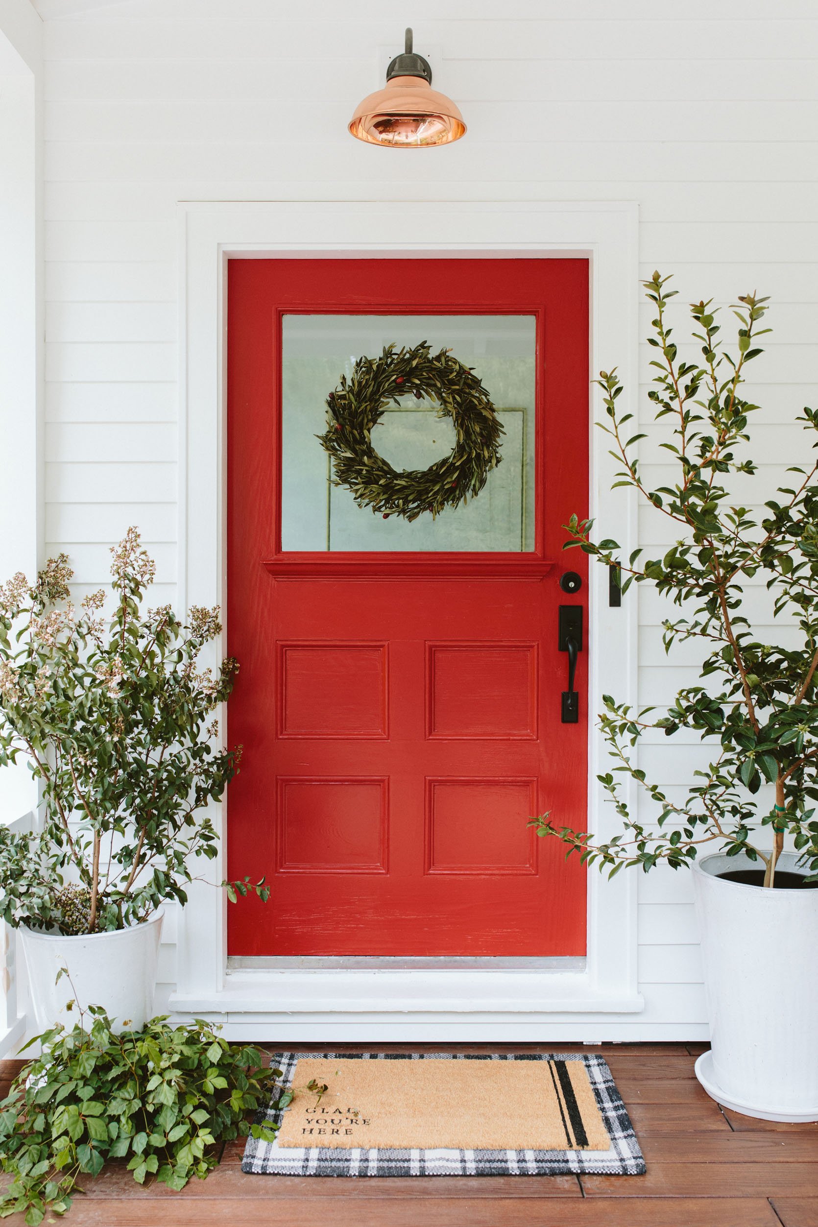 At one point Brian all but begged for a red door (we had one in LA and loved it). I was pretty drained from decision fatigue at that point (and I love red TBH) so I got excited and we went for it. But once it was painted it felt too bold for us, just too much to be the first thing you saw as you drove up. The red color, Poinsettia SW 6594 is EXCELLENT for a poppy piece of furniture, but once we repainted the color Mountain Pass SW 9655 (Emerald® Designer Edition™ in semigloss) we felt like it was WAY more us. (Although the red was really fun during Christmas :))