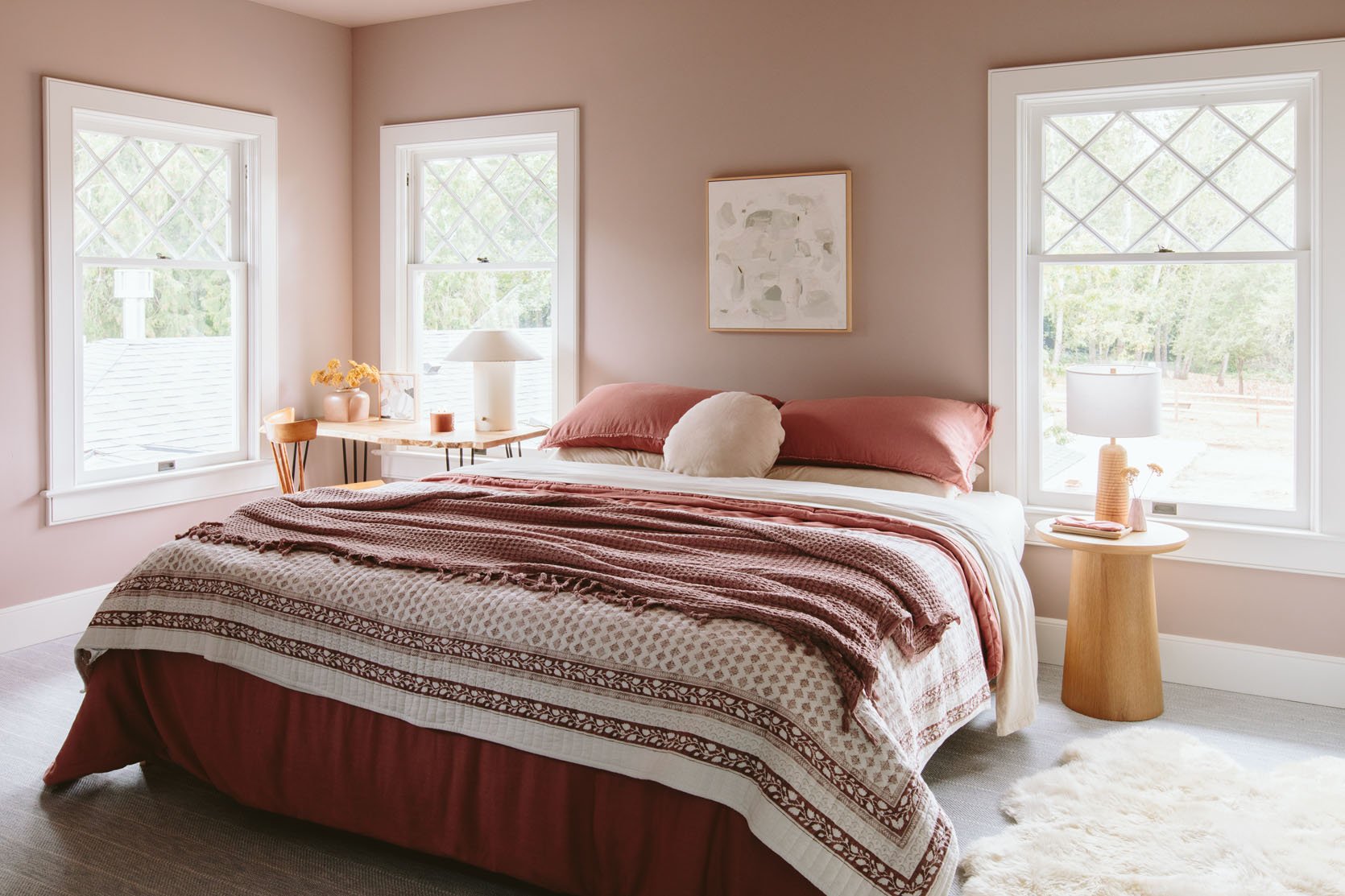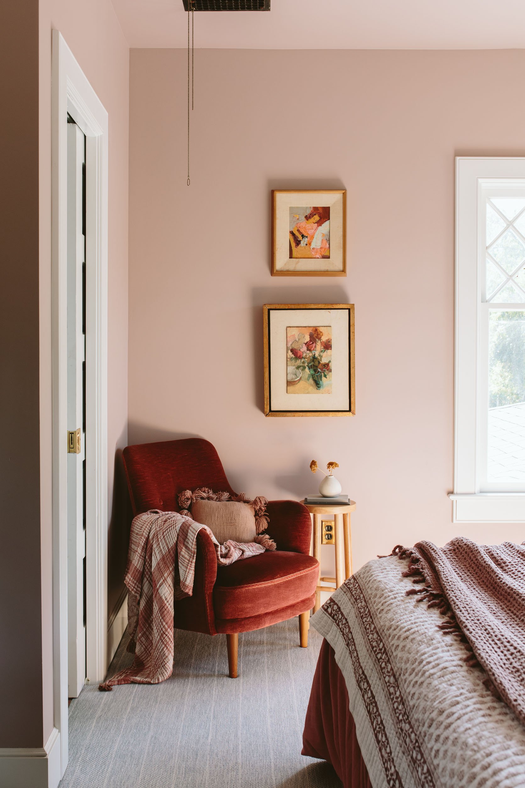Maybe my favorite color in the house and I’m not alone. This room is so warm and cozy, and yet bright and airy. I want to paint every room this color (or a blue and green version of this color). As a reference, this has a LRV of 44, so it’s pretty in the middle and in here reads more of a pink than it would in a darker room (where it might read more neutral).